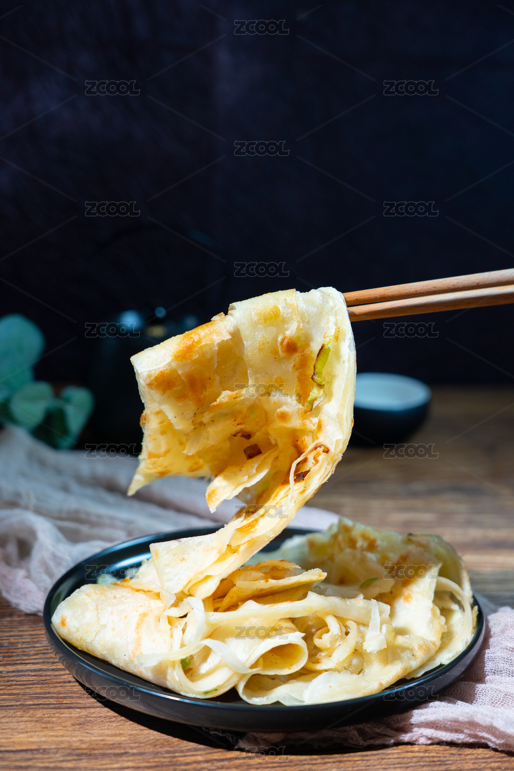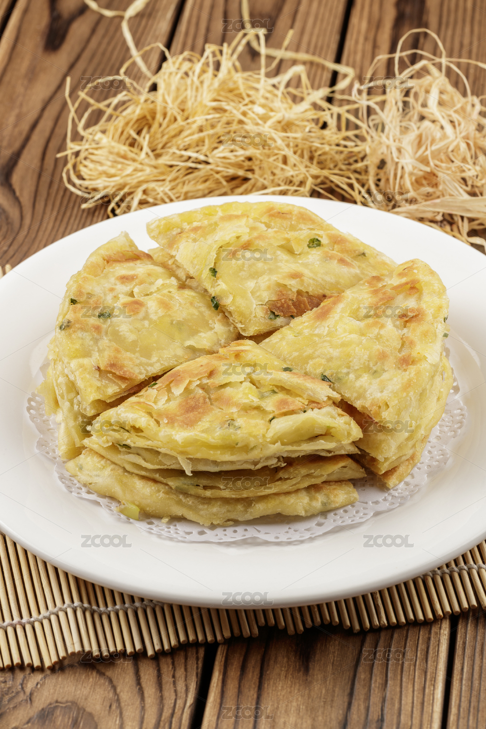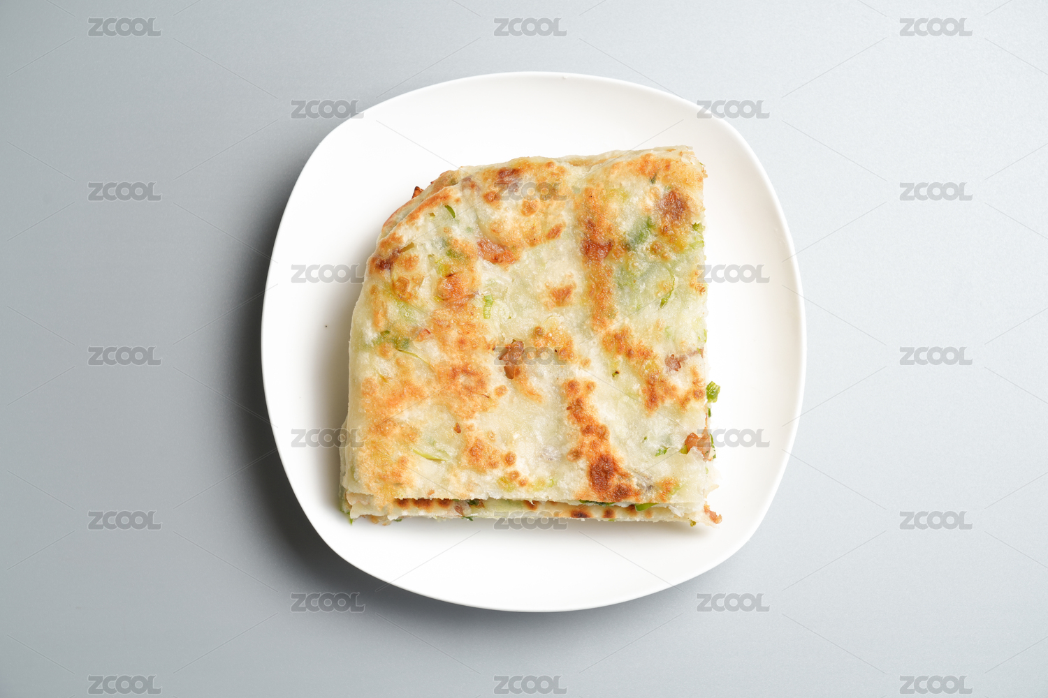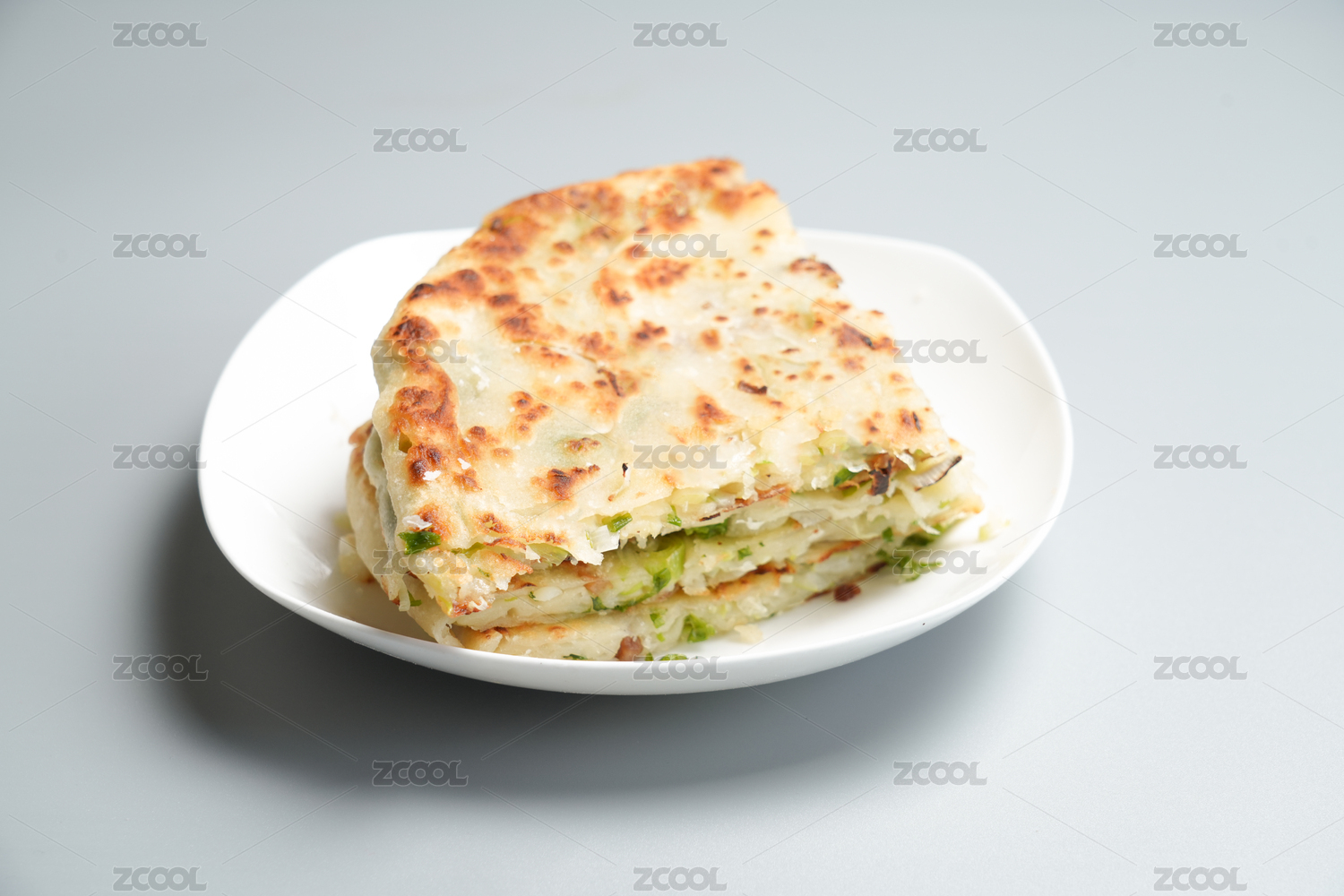 主食面食蔥花餅在盤子里