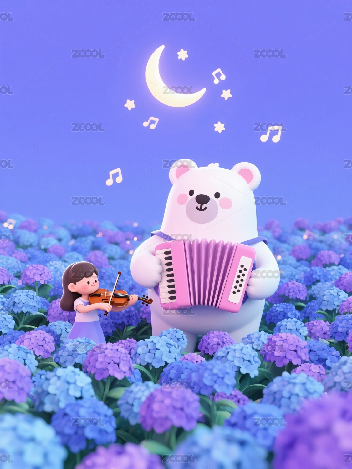 小熊彈奏手風琴女孩拉小提琴