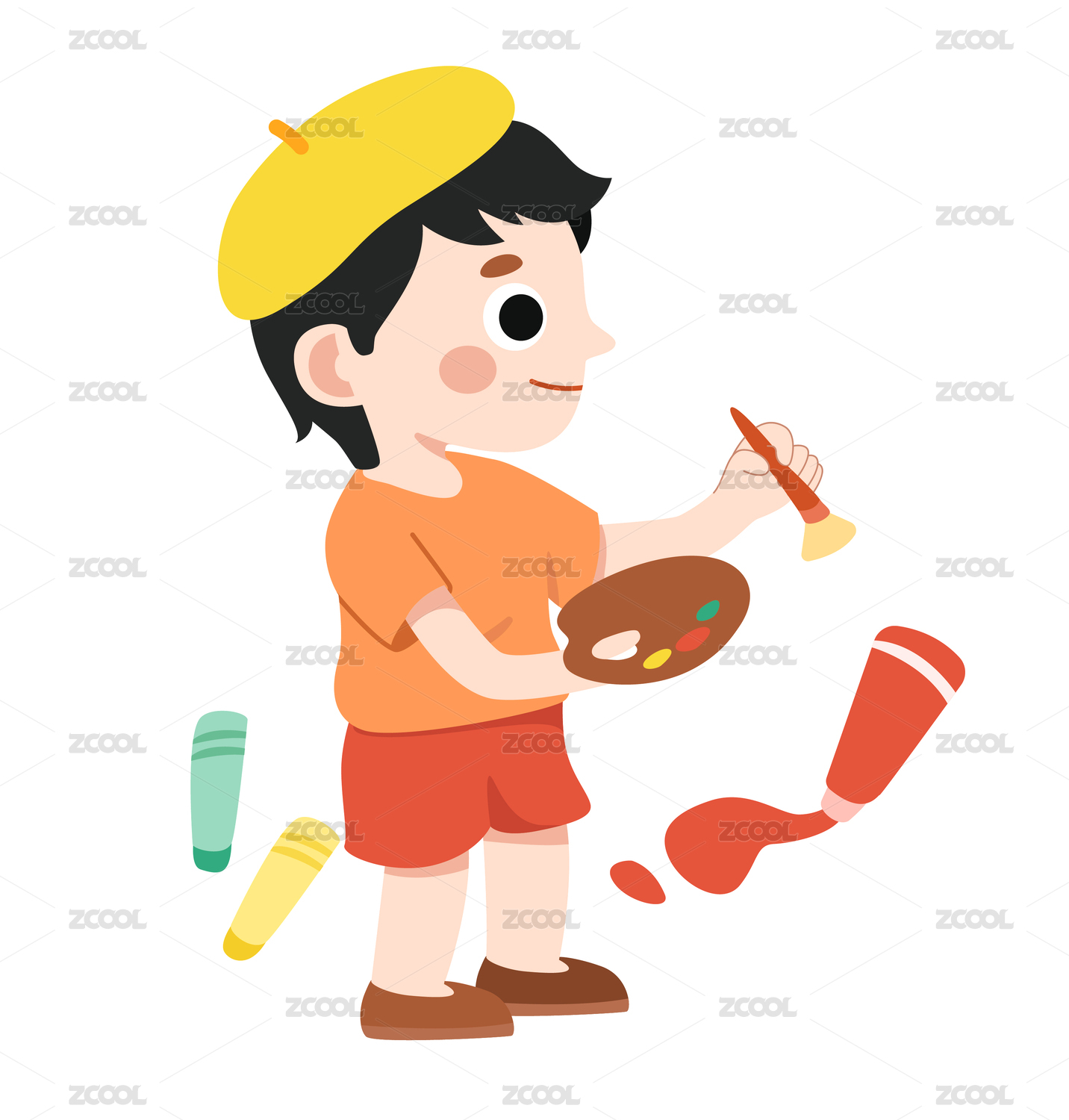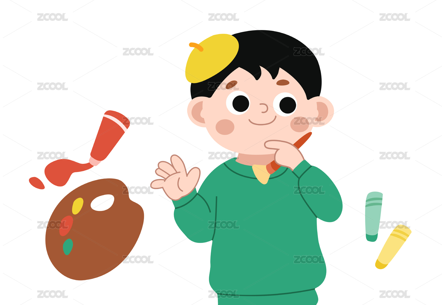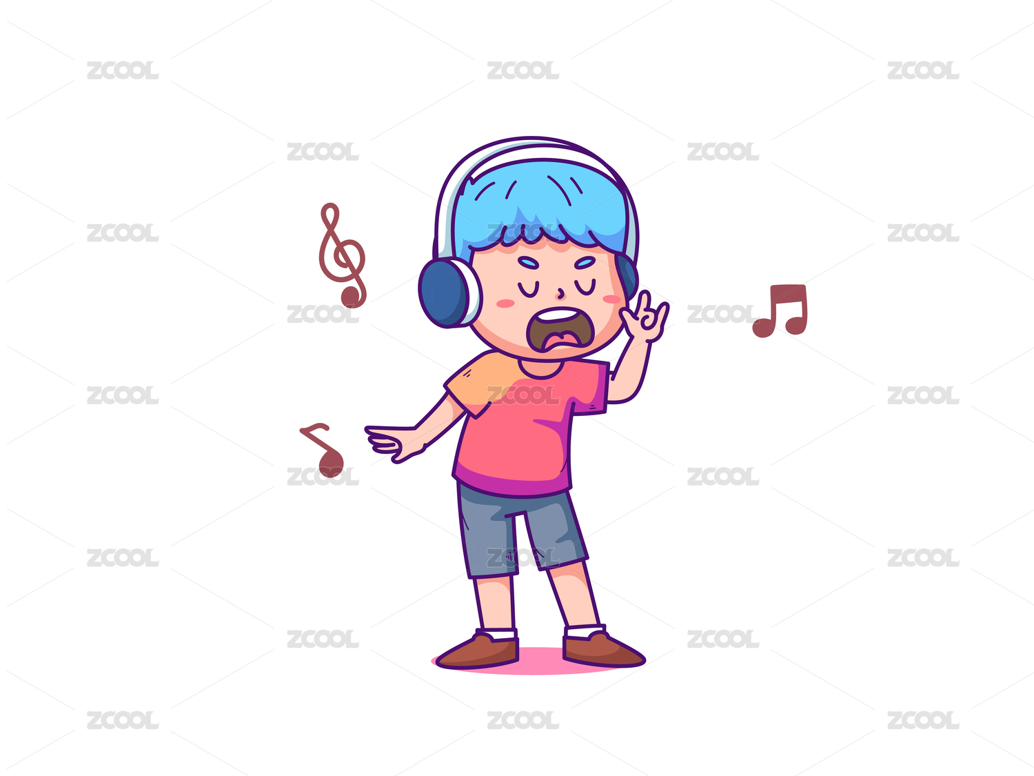 小男孩正在唱歌矢量扁平插畫
