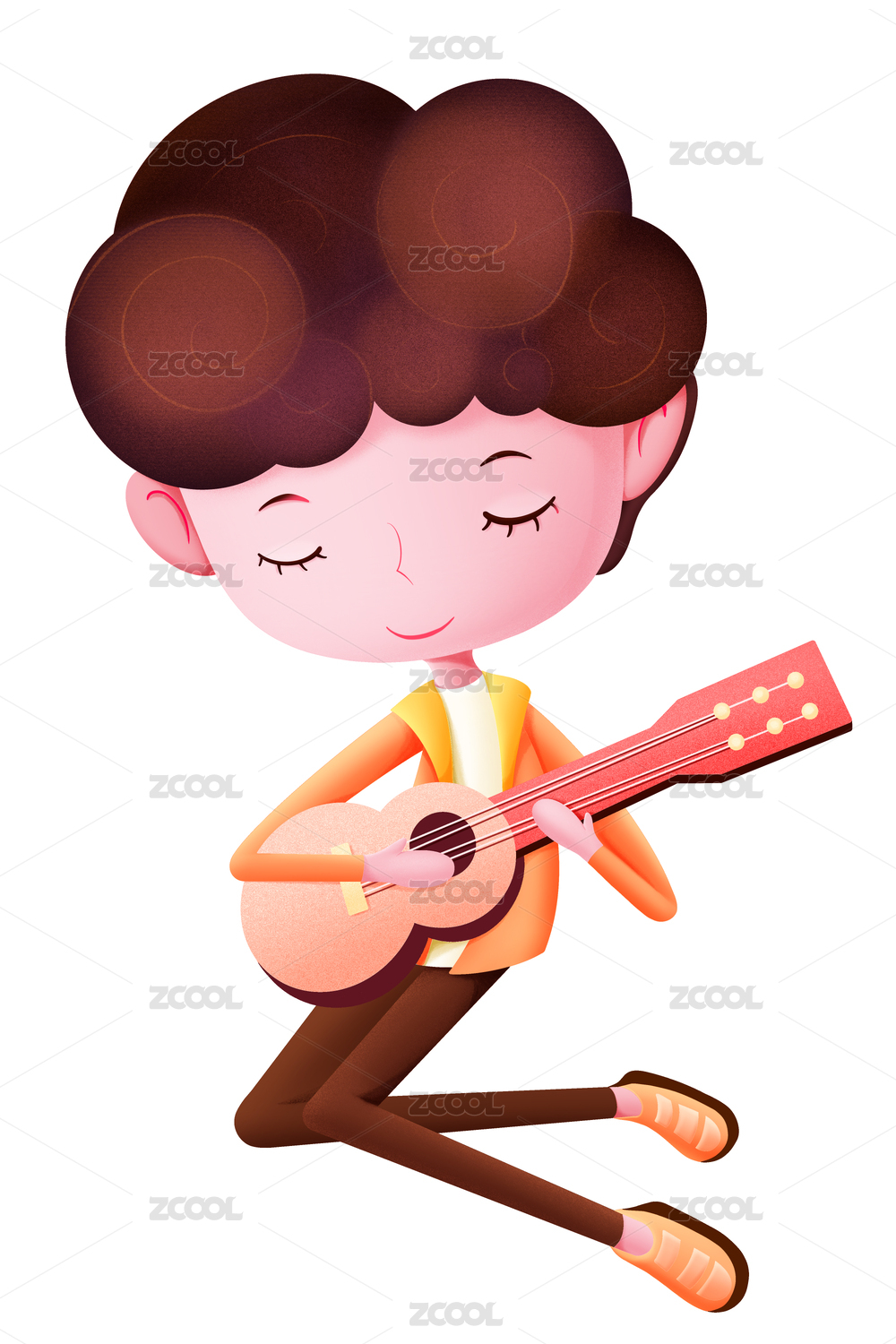 正在彈吉他表演的小男孩手繪插畫