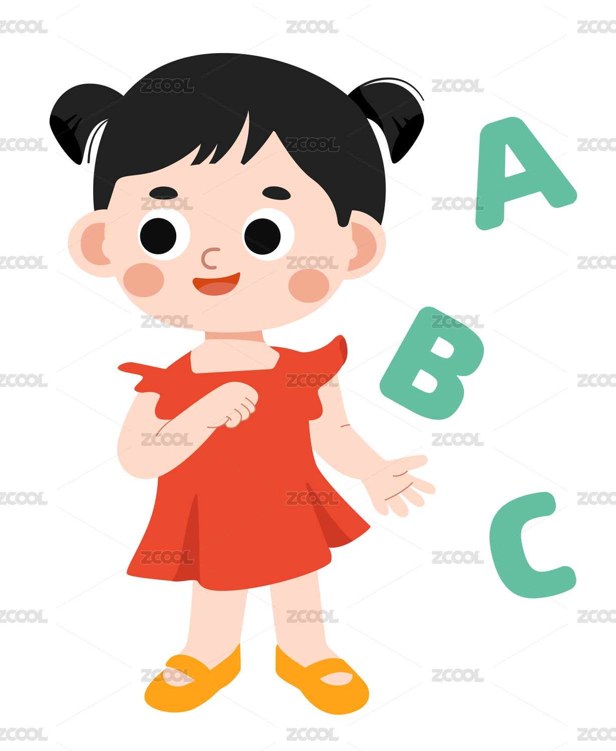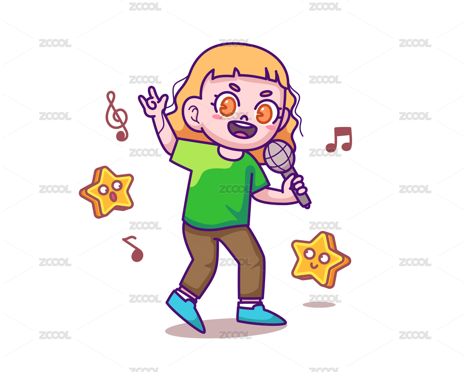 小女孩拿著話題在唱歌矢量插畫