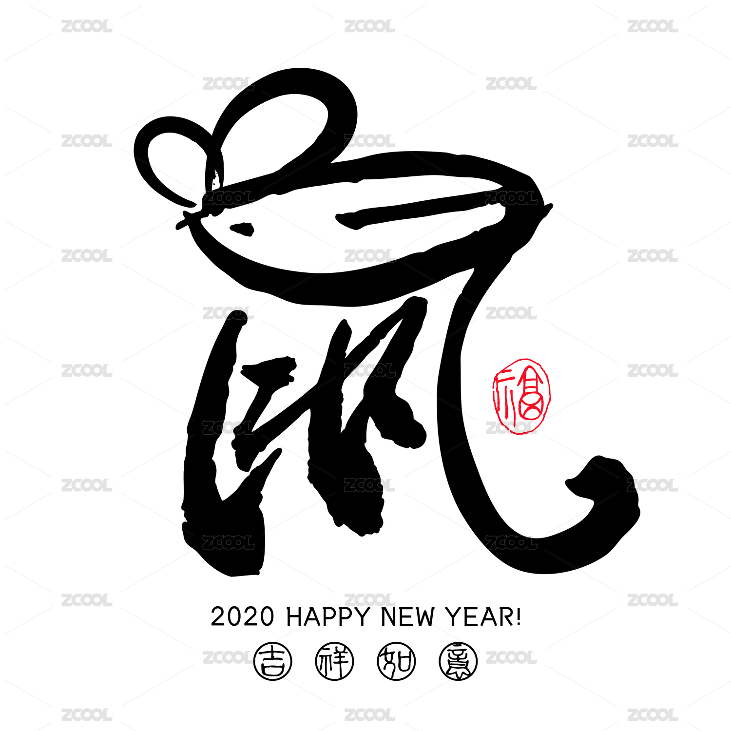 2020鼠年春節(jié) 漢字手寫毛筆書法創(chuàng)意設計