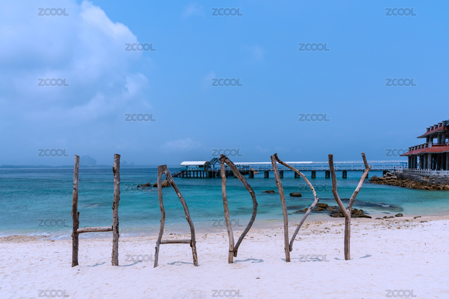 中國(guó)三亞蜈支洲島的藍(lán)天大海和白色沙灘