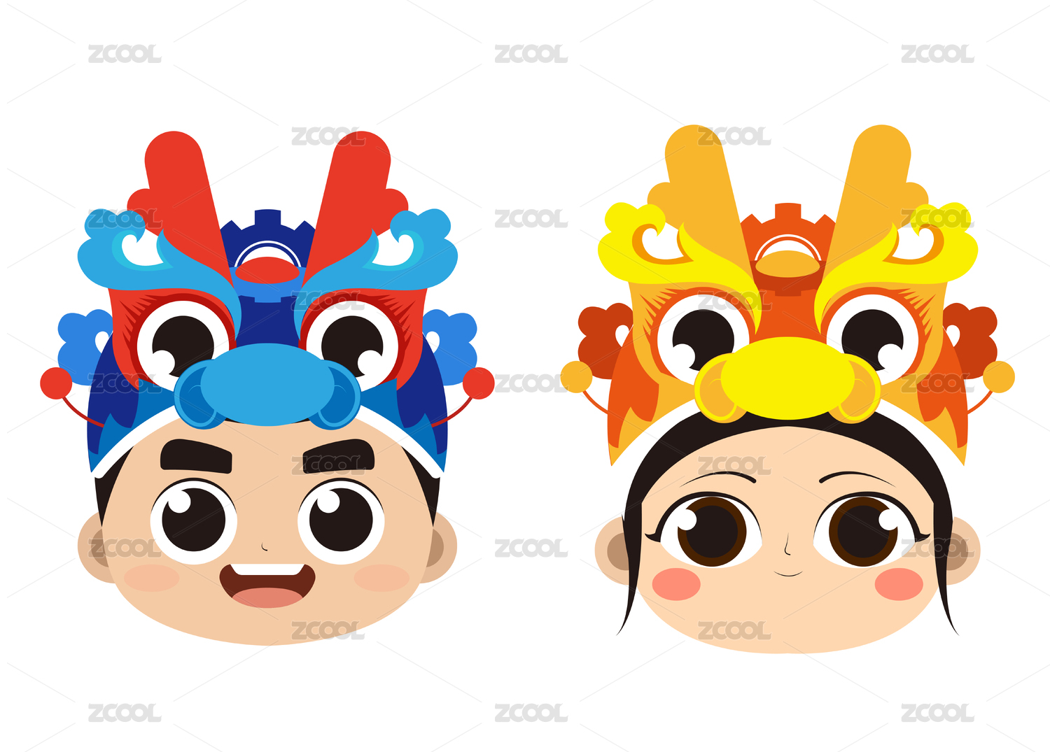 龍鳳國風帽子卡通形象原創(chuàng)插畫