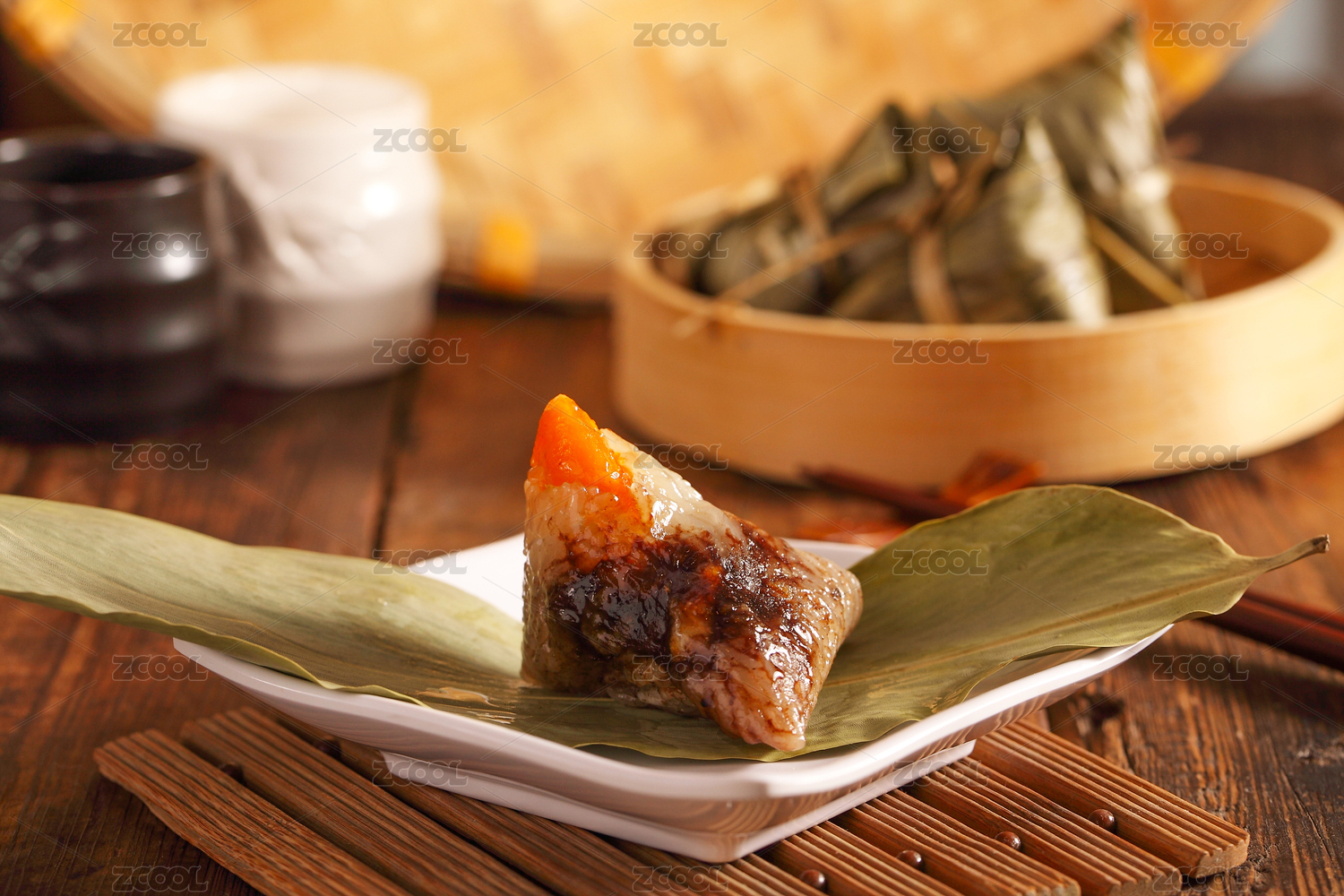 放在盤子上的潮州特產雙拼粽