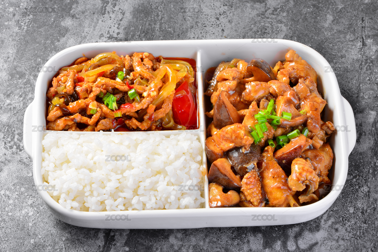 中式魚香肉絲香菇燒雞雙拼飯