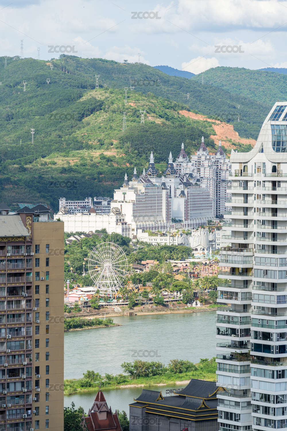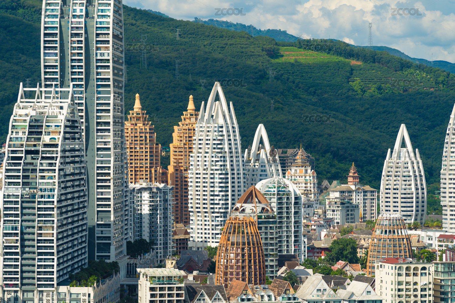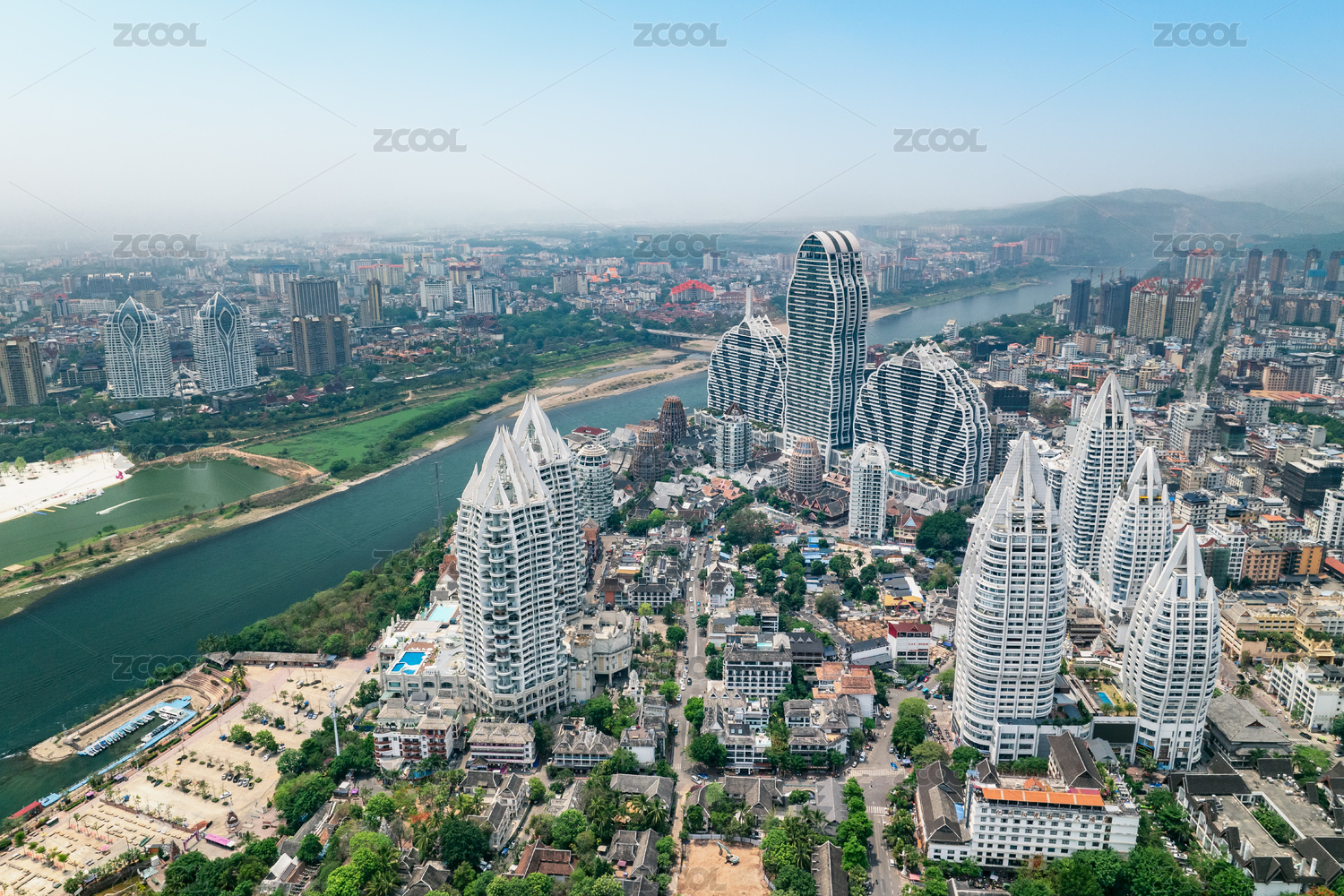 西雙版納景洪告莊西雙景城市高樓天際線航