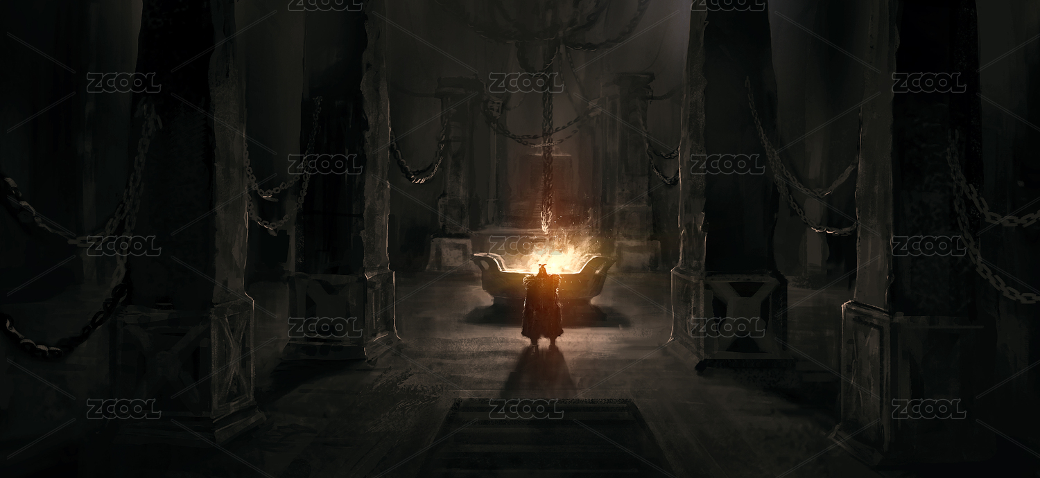 神秘黑暗奇幻地牢走廊環(huán)境概念藝術(shù)插畫