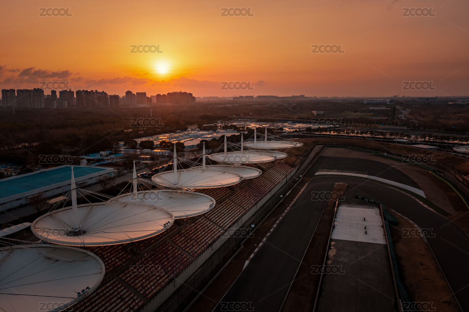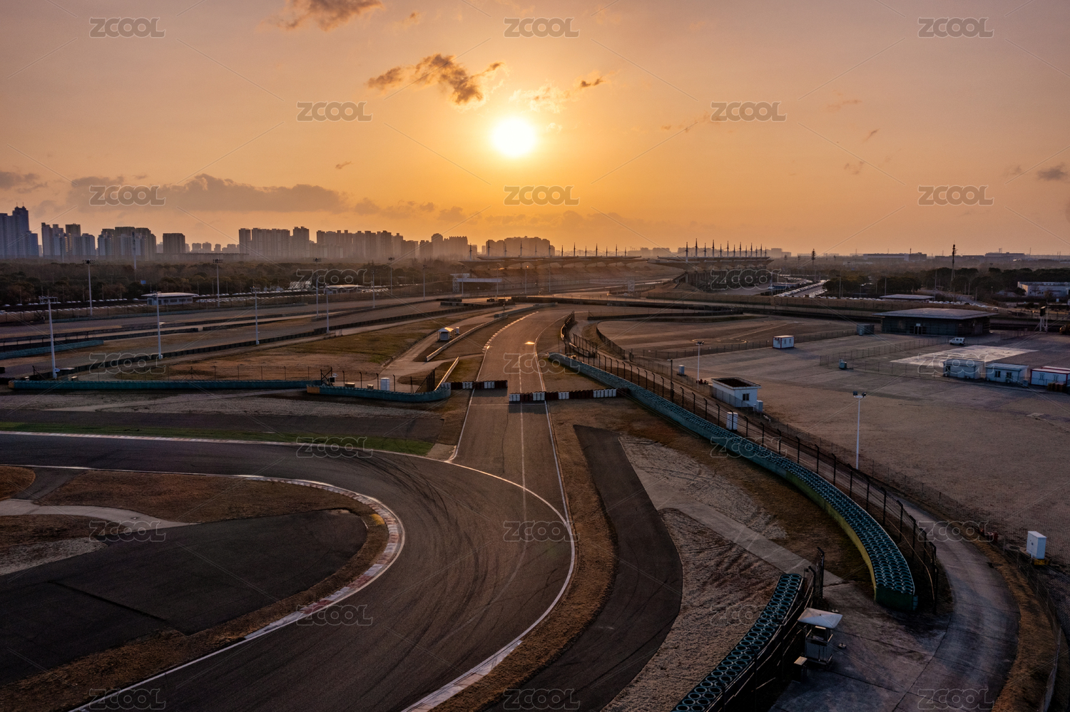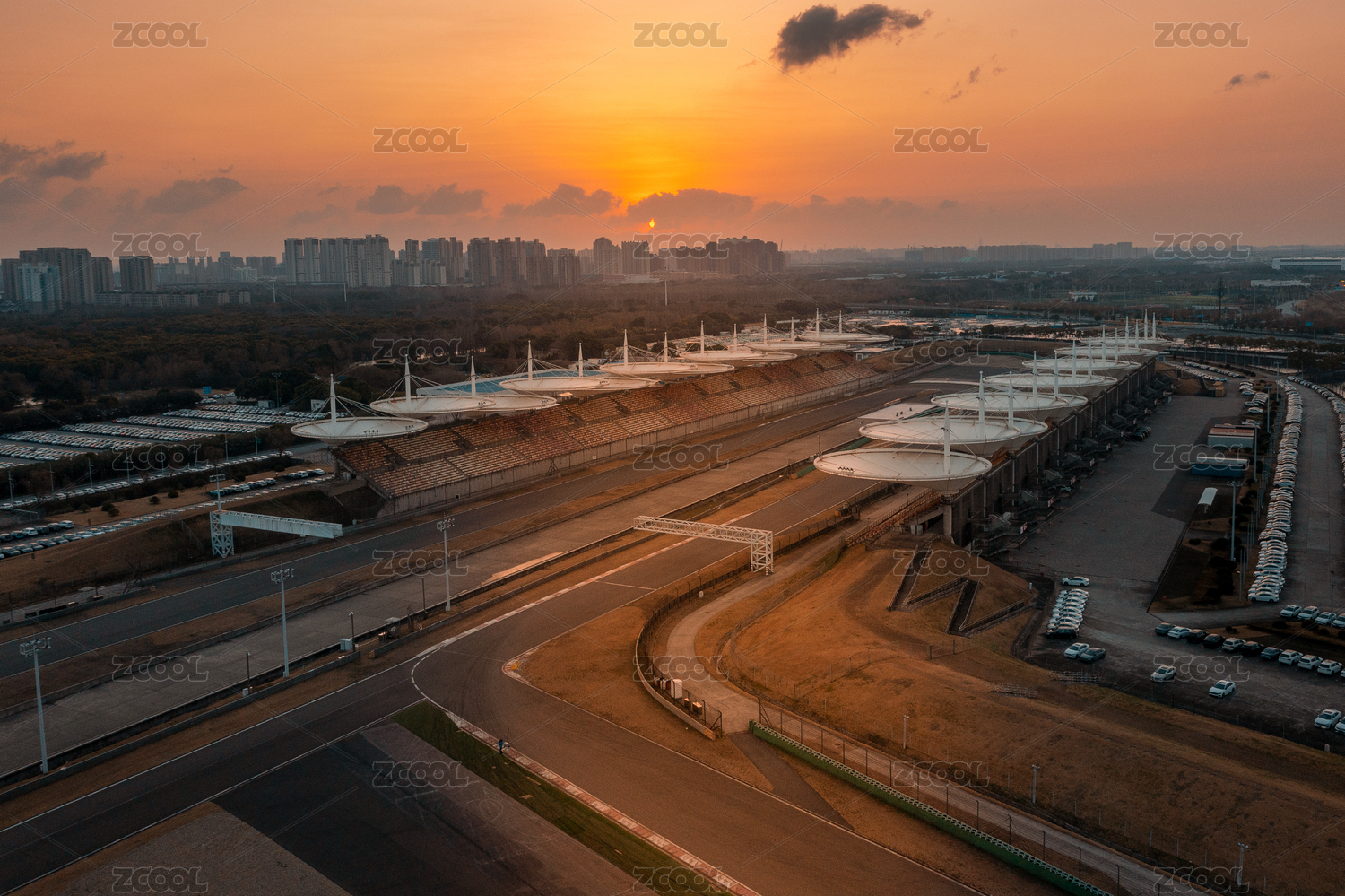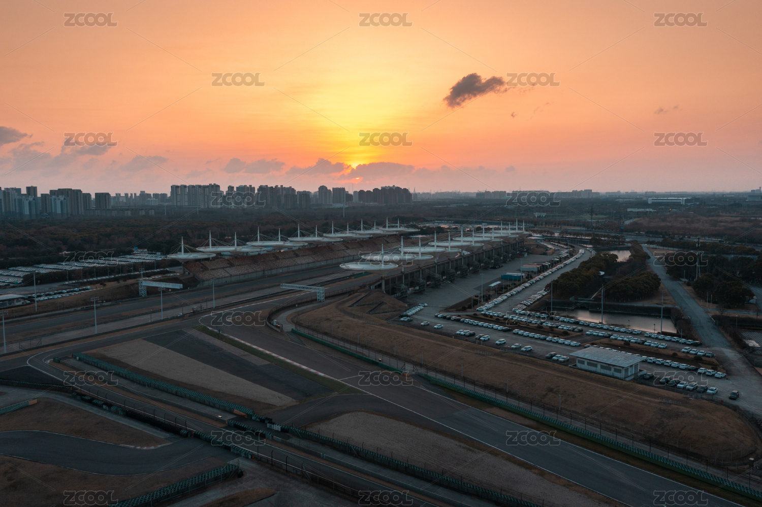 上海市嘉定區(qū)F1賽車場日出航拍風景