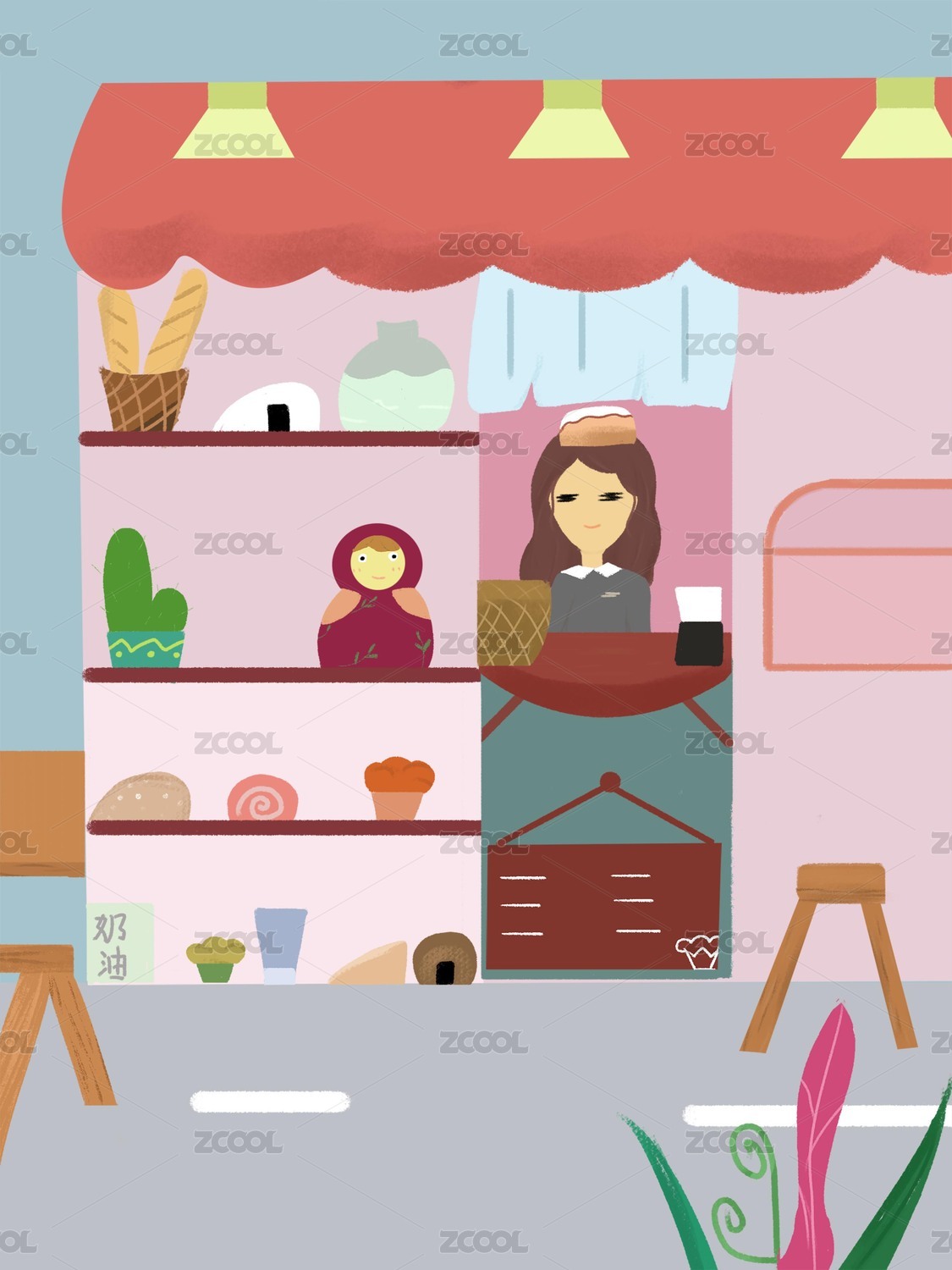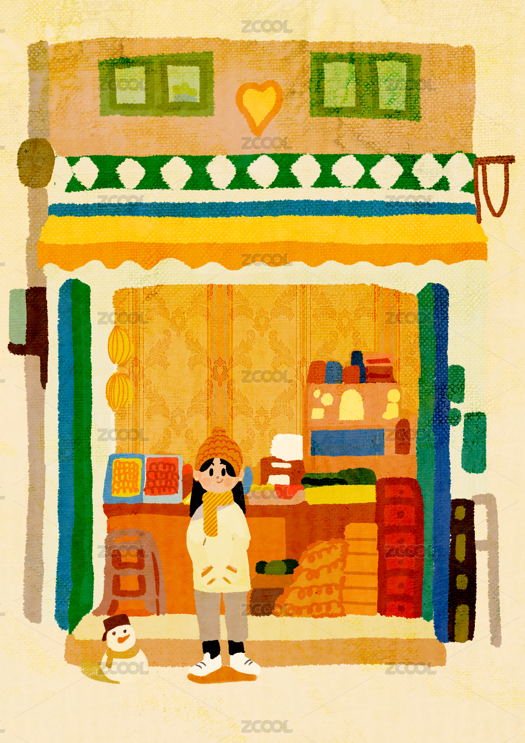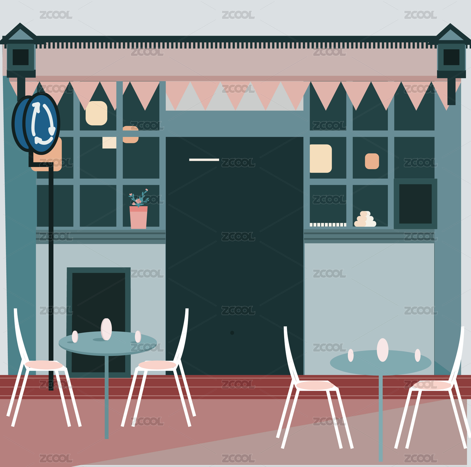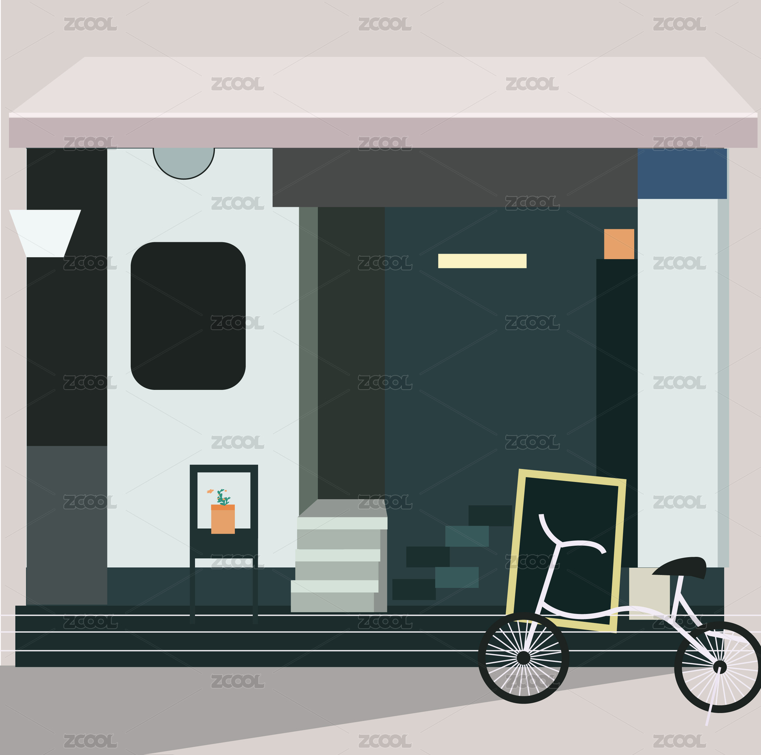 簡潔的小店設(shè)計(jì)和治愈的場景-矢量插畫