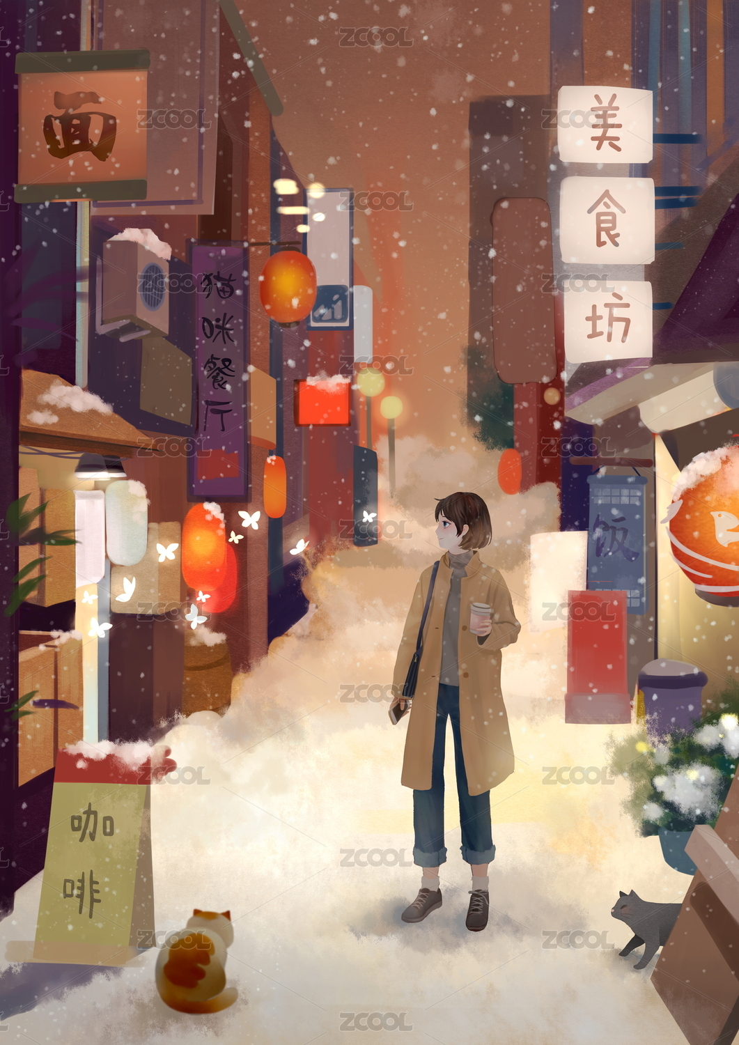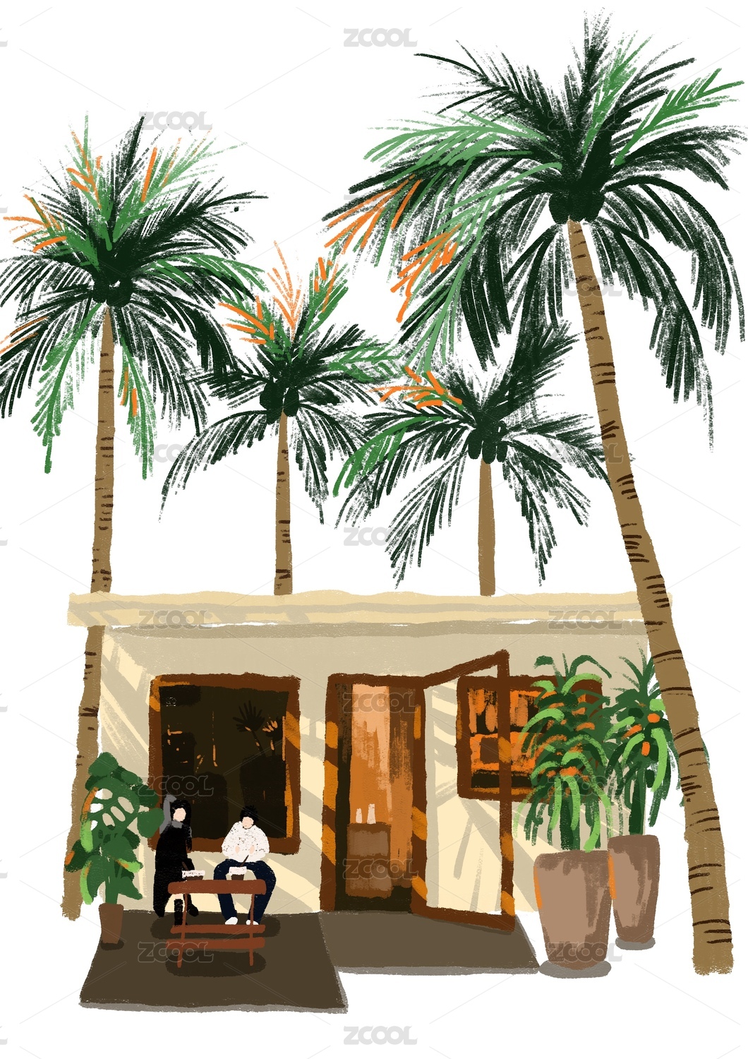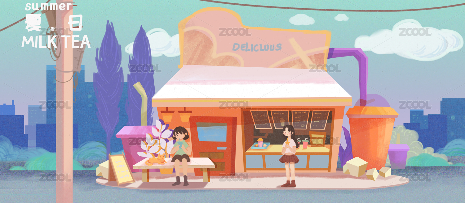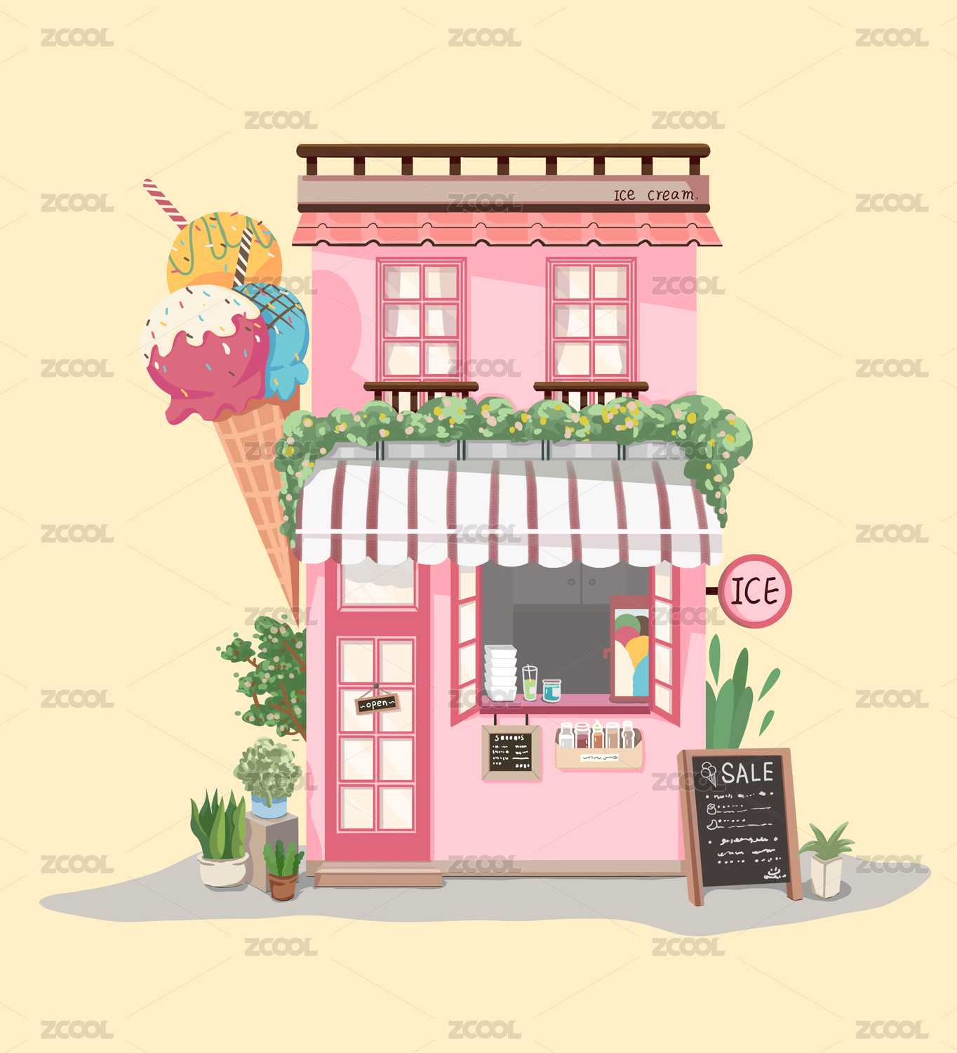 簡潔的小店設(shè)計(jì)和治愈的場景-矢量插畫