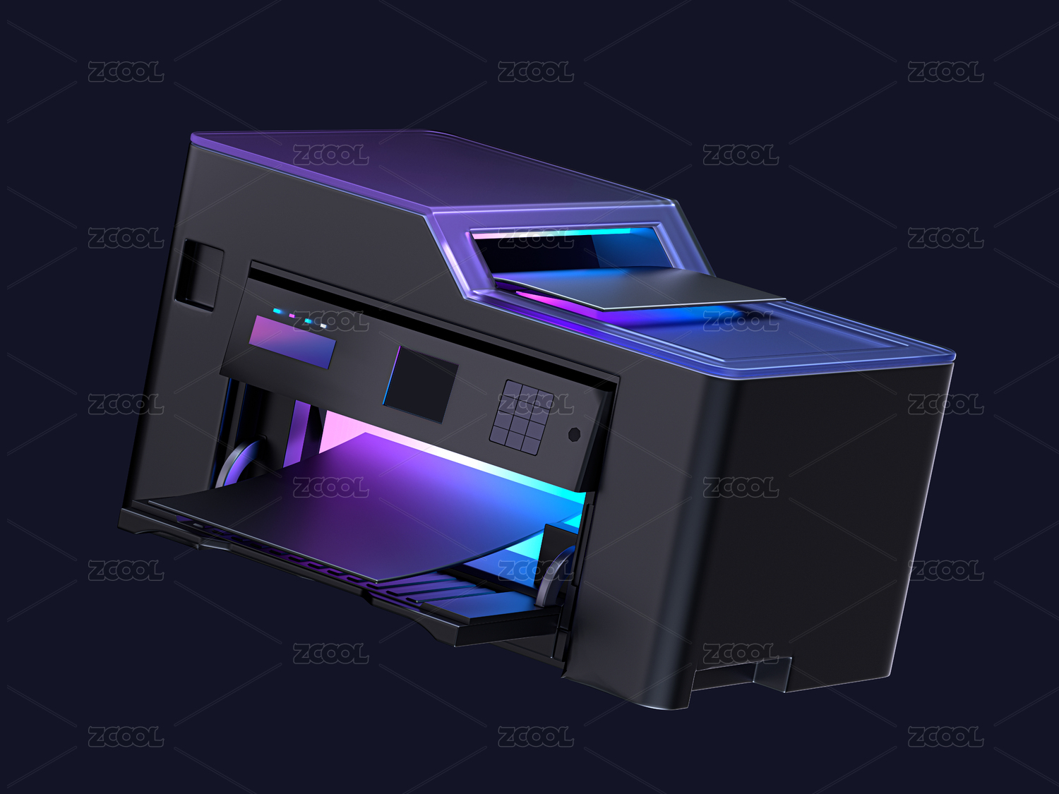 深色炫彩打印機(jī)科技感硬件3D圖標(biāo)