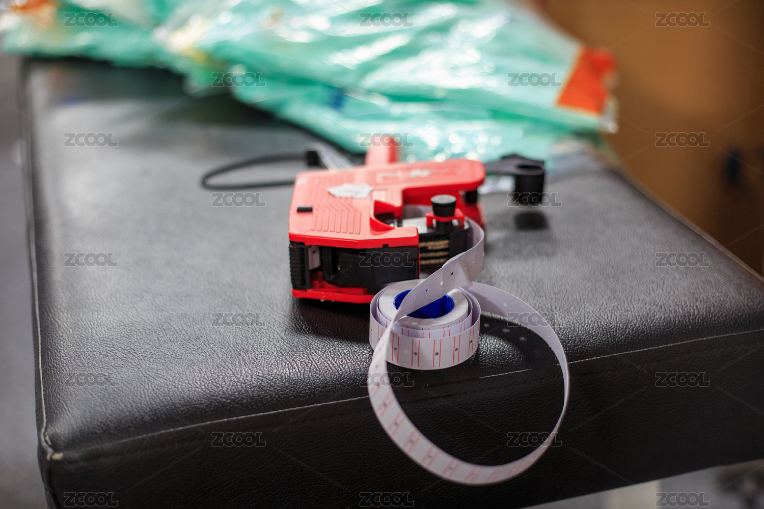 紅色標(biāo)簽打印機(jī)與卷尺