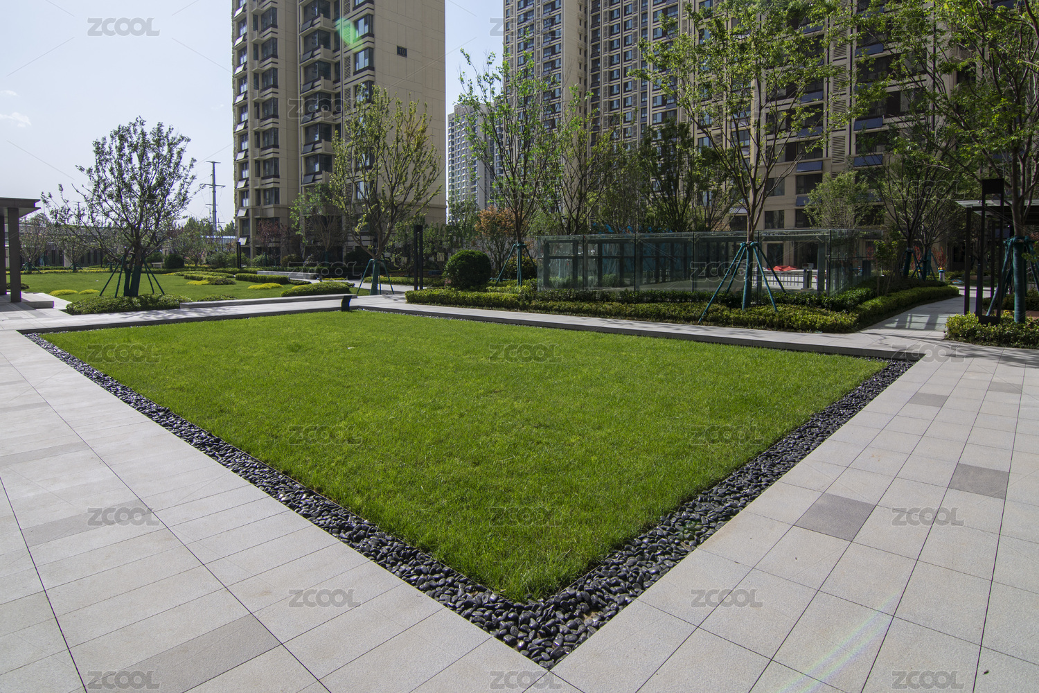 美麗的高端小區(qū)樓盤室外園林景觀