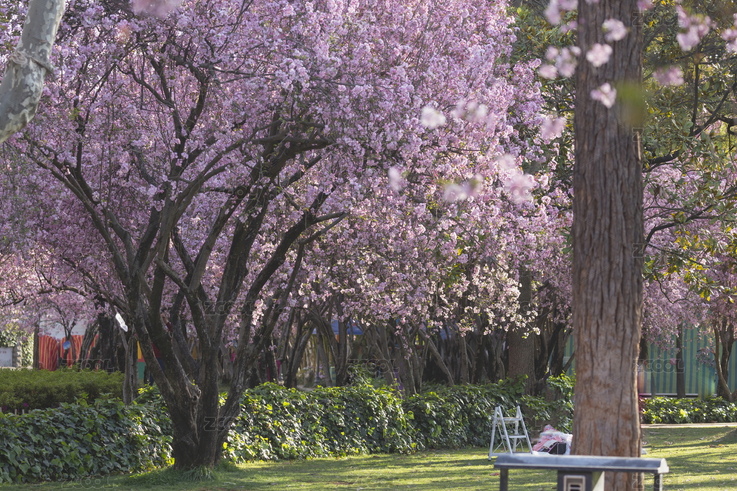 光影垂絲海棠綠色草坪園林景觀
