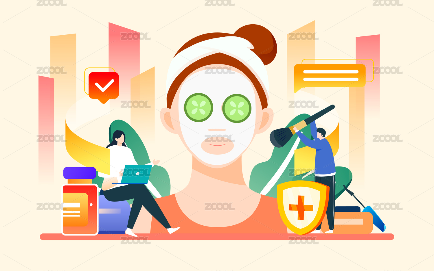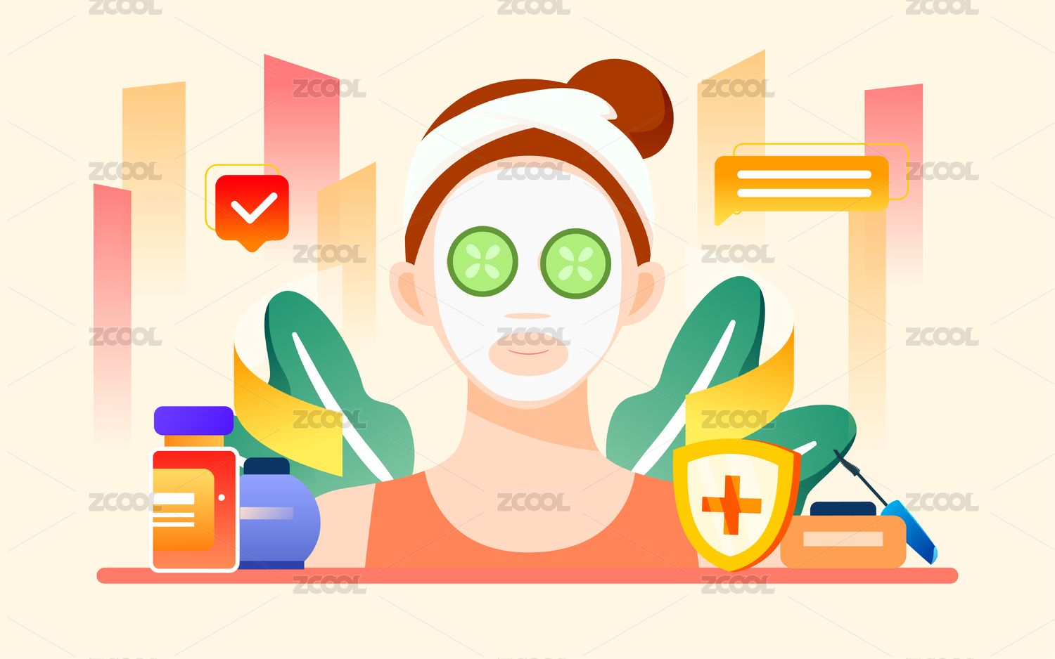 醫(yī)美膚面膜護膚插畫美容整形化妝打扮海報
