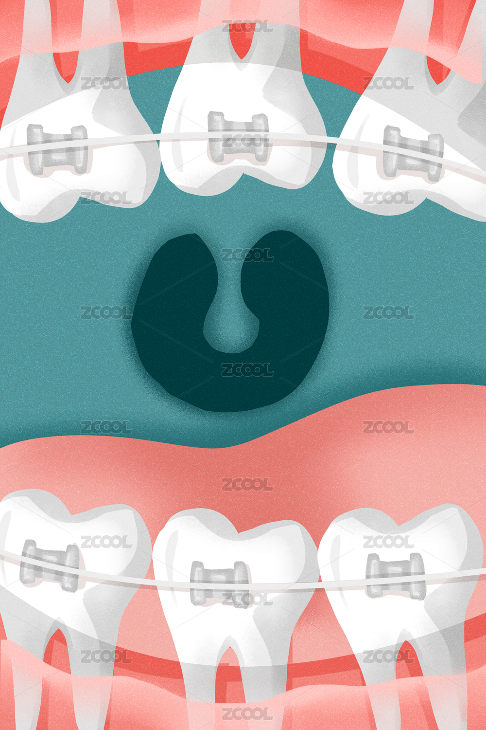扁平風格口腔內(nèi)的牙齒整形插畫背景