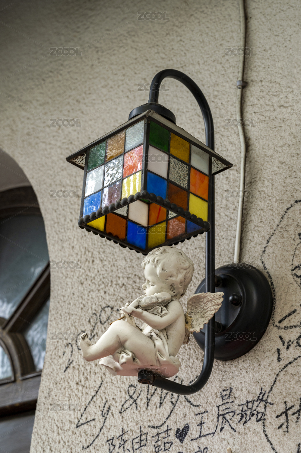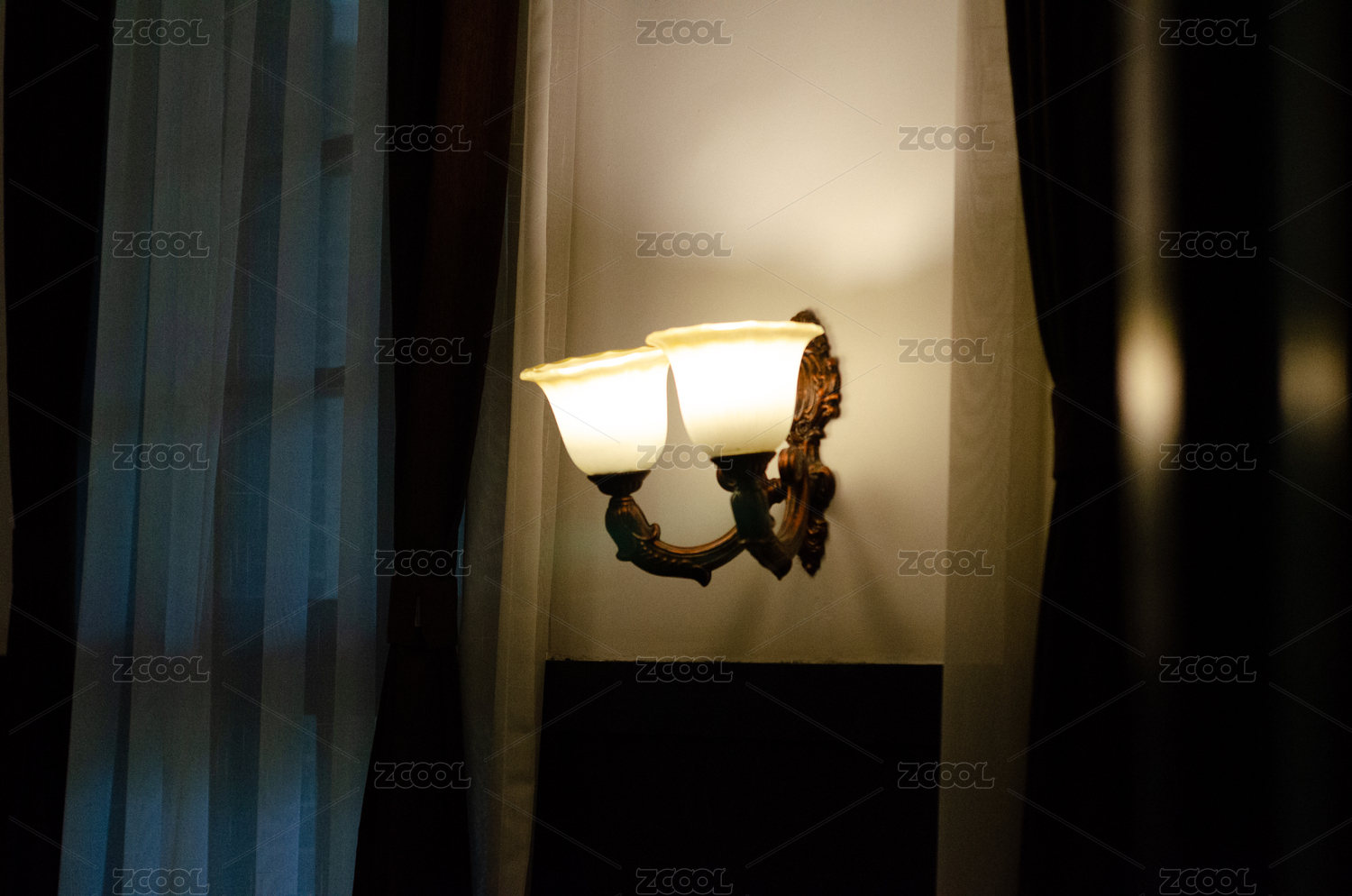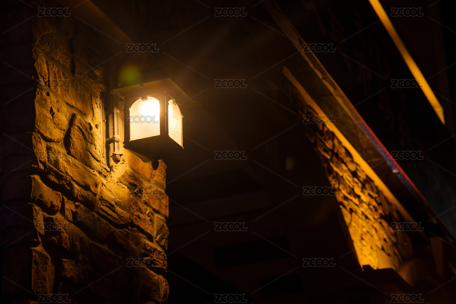 古色古香的磚墻上掛著一盞明亮的壁燈