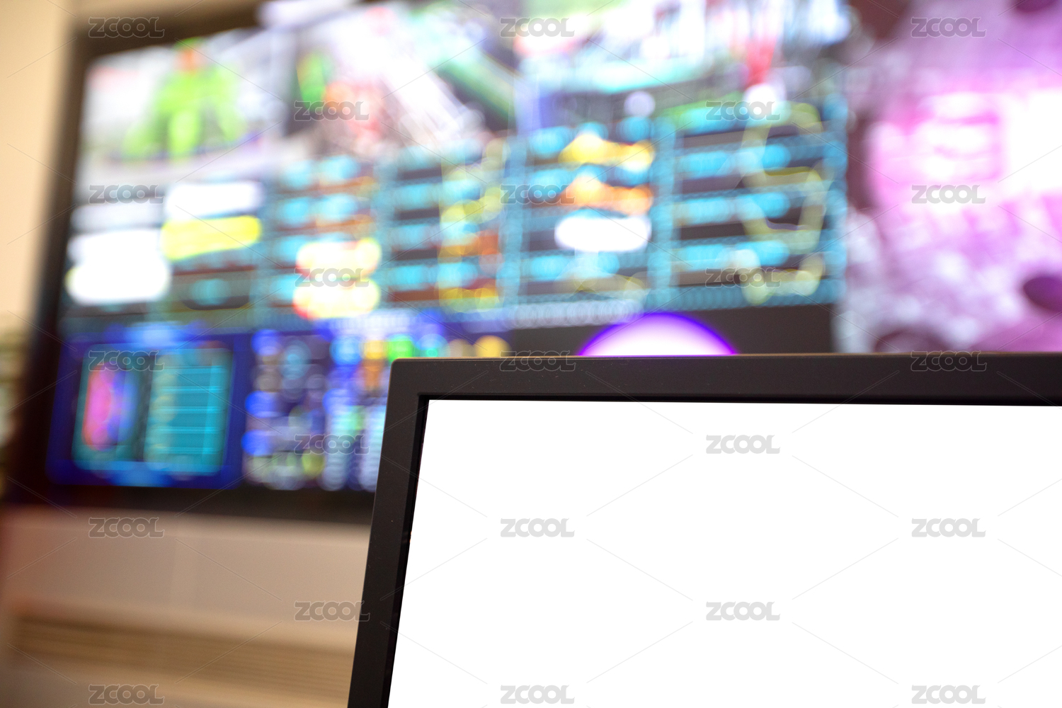 白屏電腦顯示器和模糊的數(shù)據(jù)背景