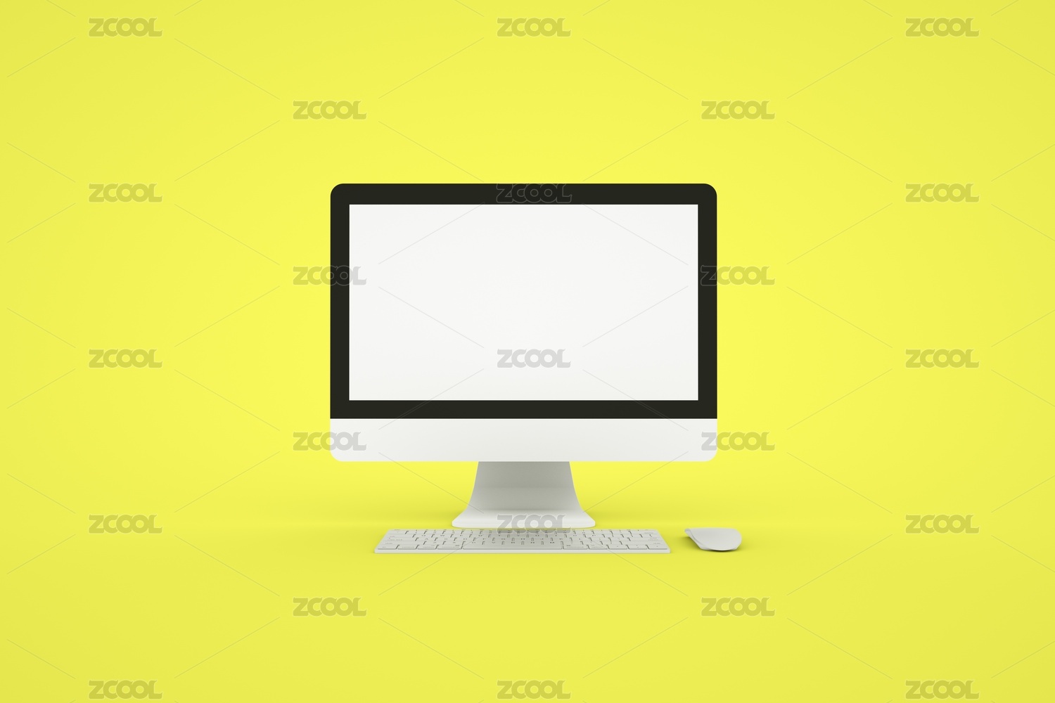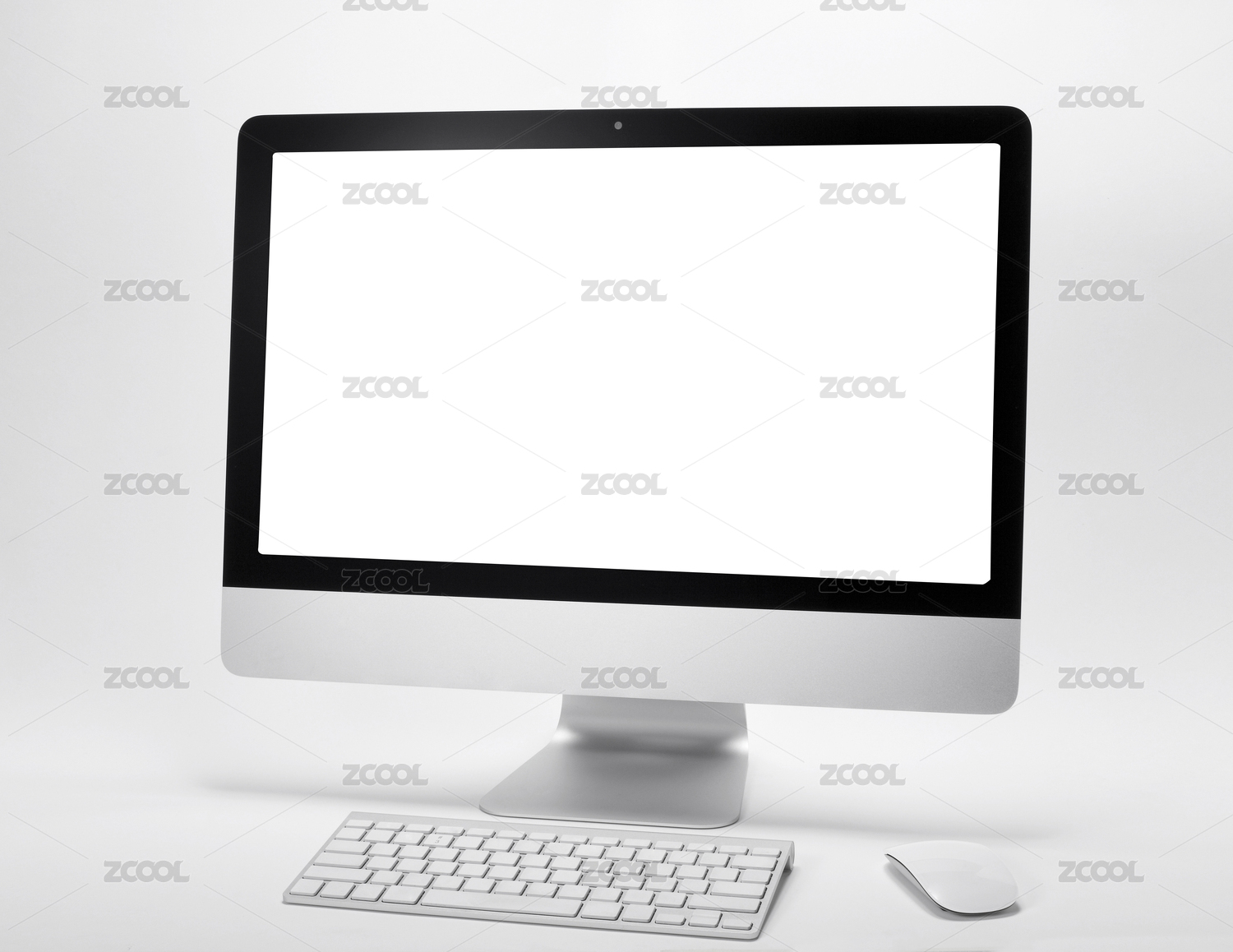 空白的電腦屏幕顯示器和鍵盤鼠標(biāo),在白色背景里