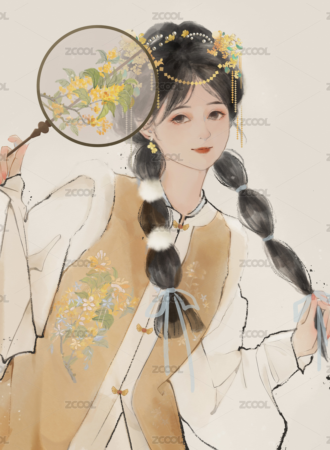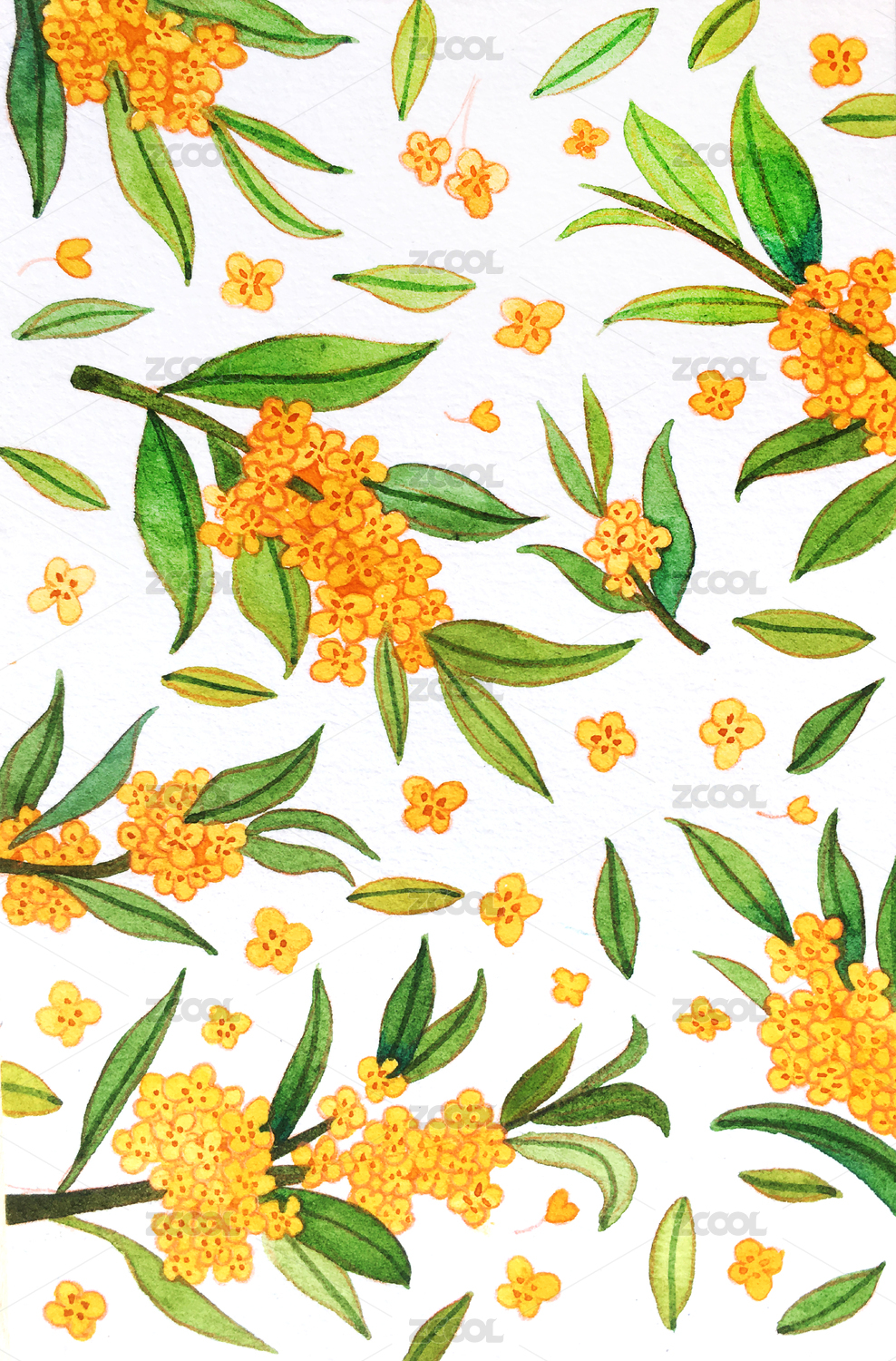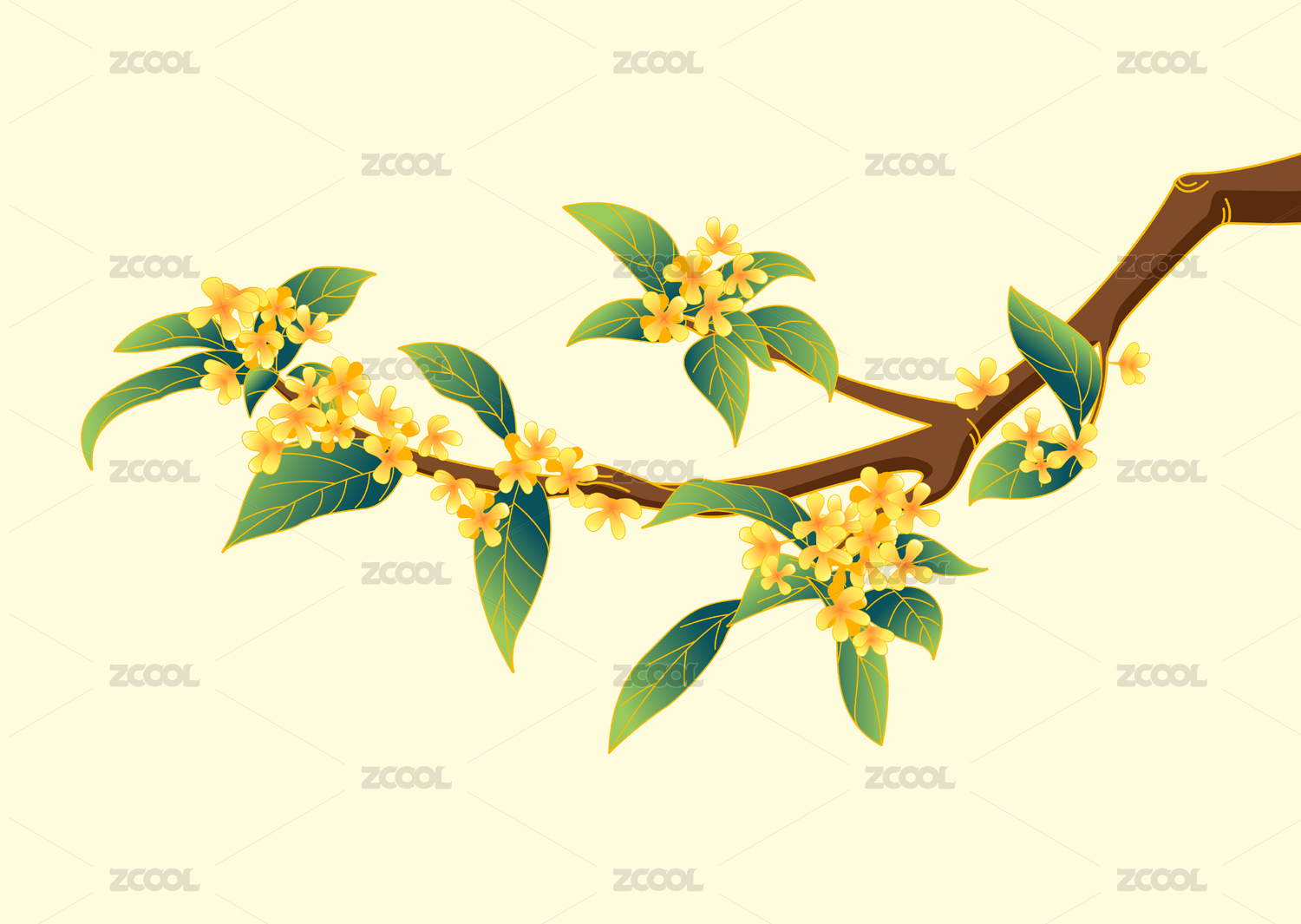 十二月令花之八月桂花剪紙渲染風(fēng)格