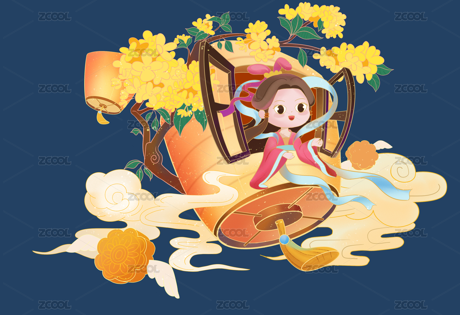 中秋節(jié)嫦娥奔月桂花月餅飛天