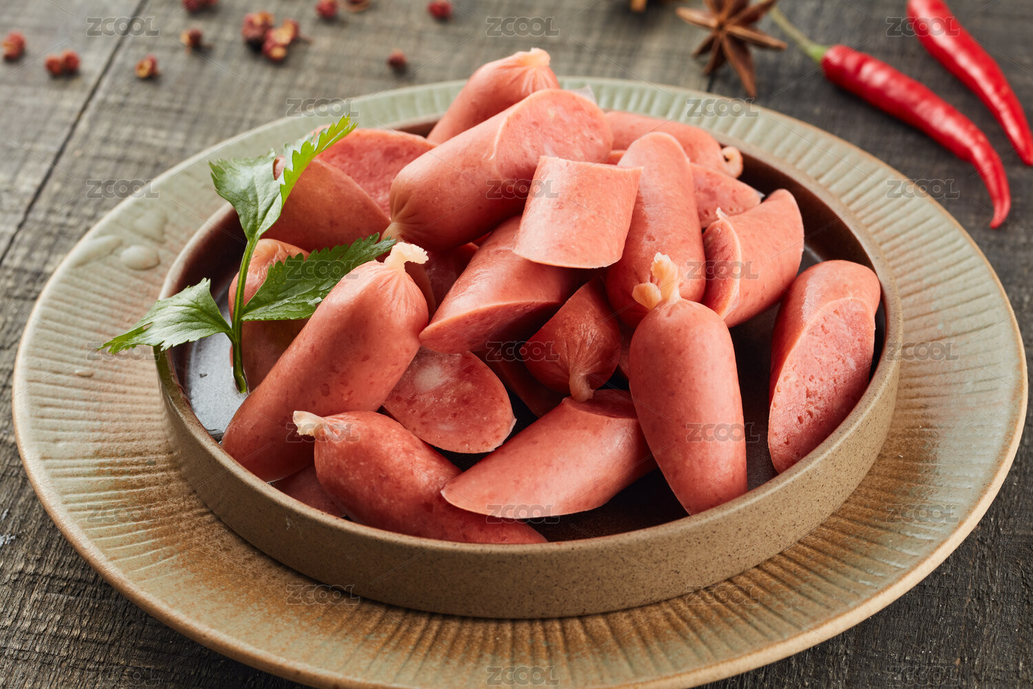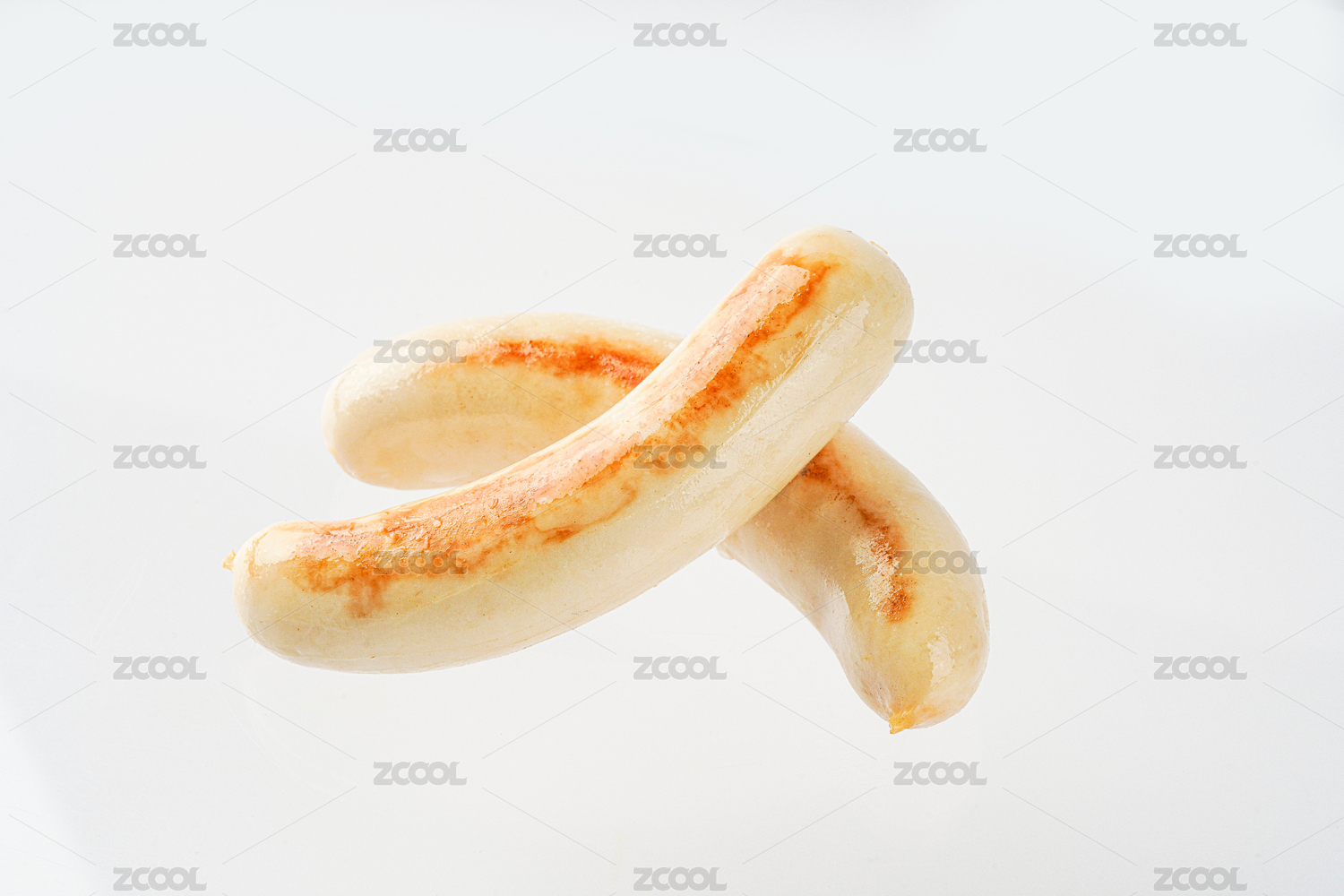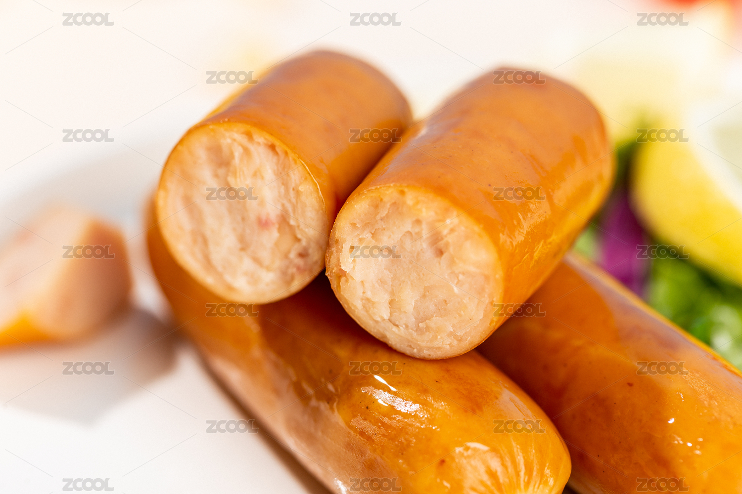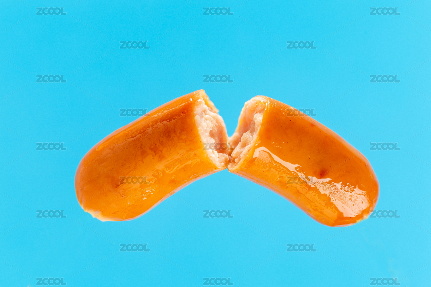 被掰開兩段的雞肉腸細節(jié)特寫