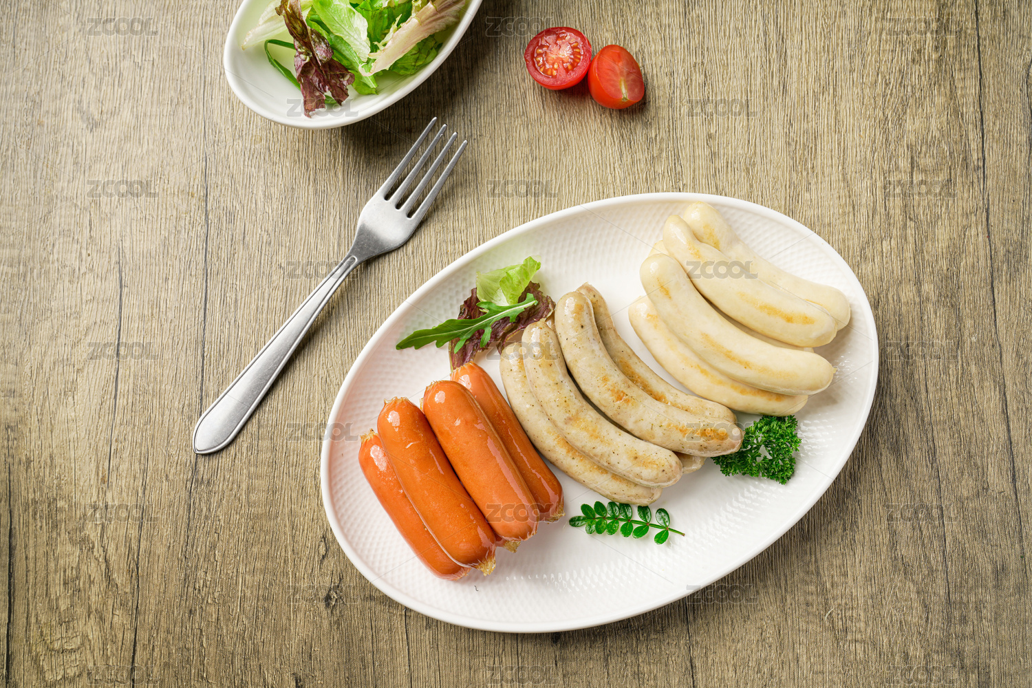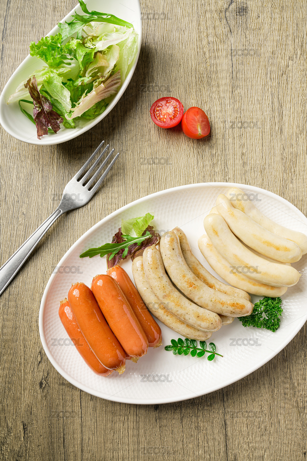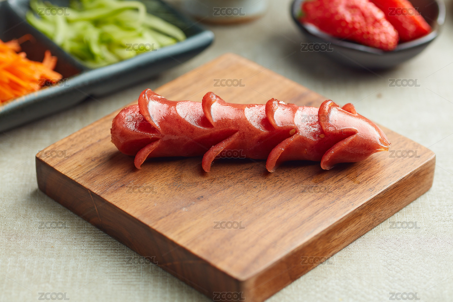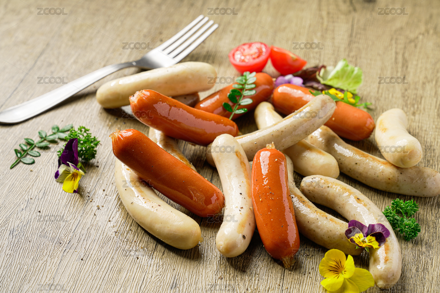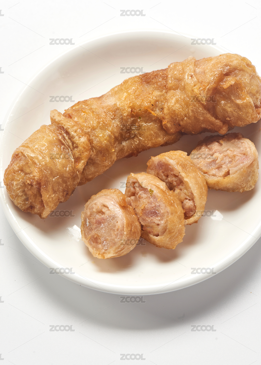 被掰開兩段的雞肉腸細節(jié)特寫