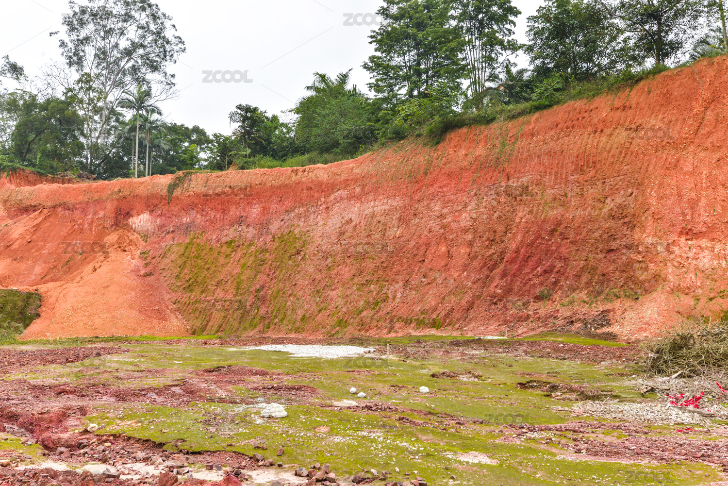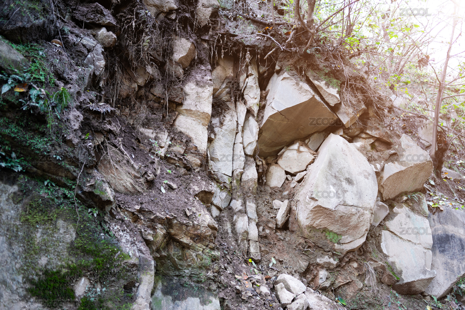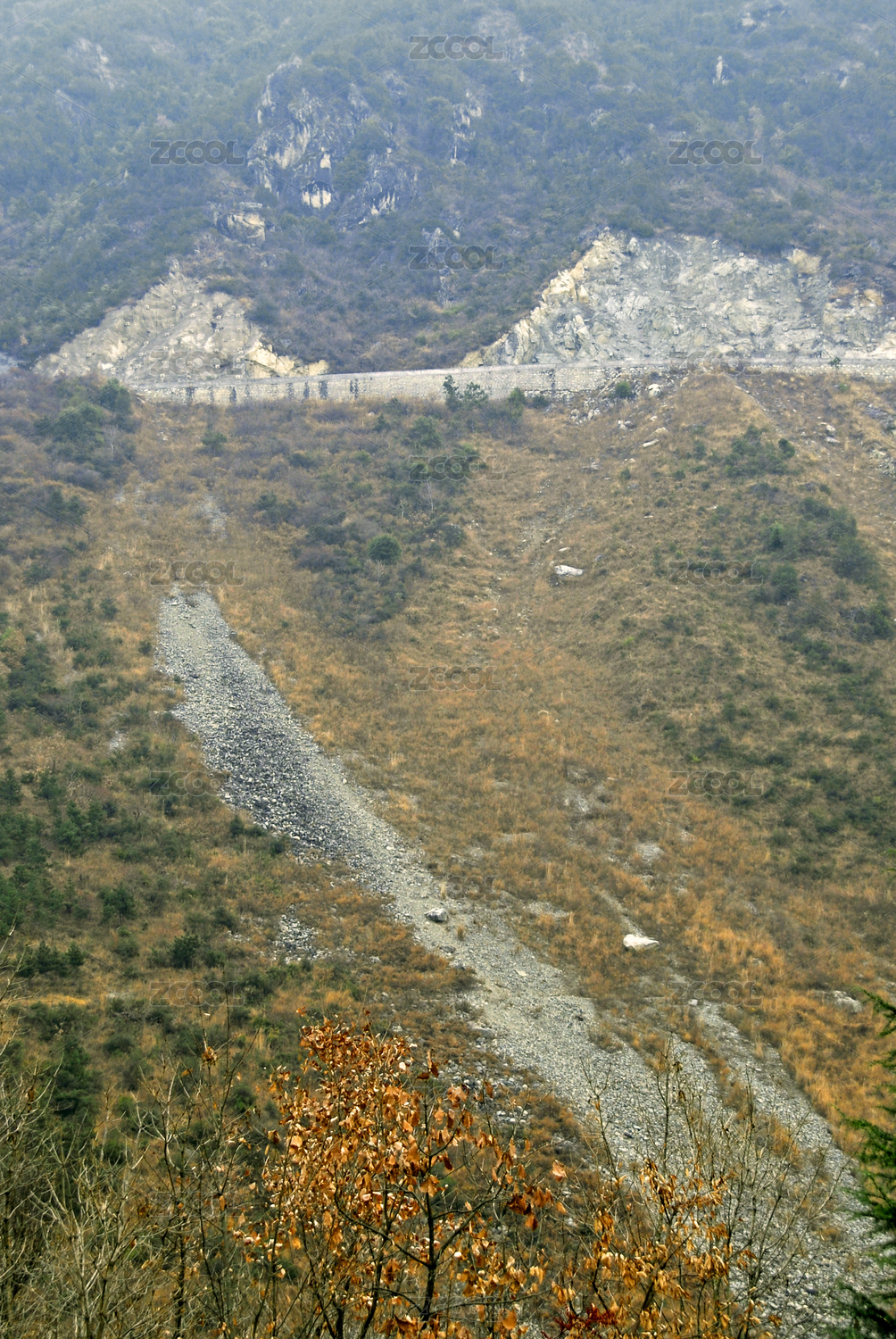 野外雨后山體滑坡出現(xiàn)泥石流后的景象
