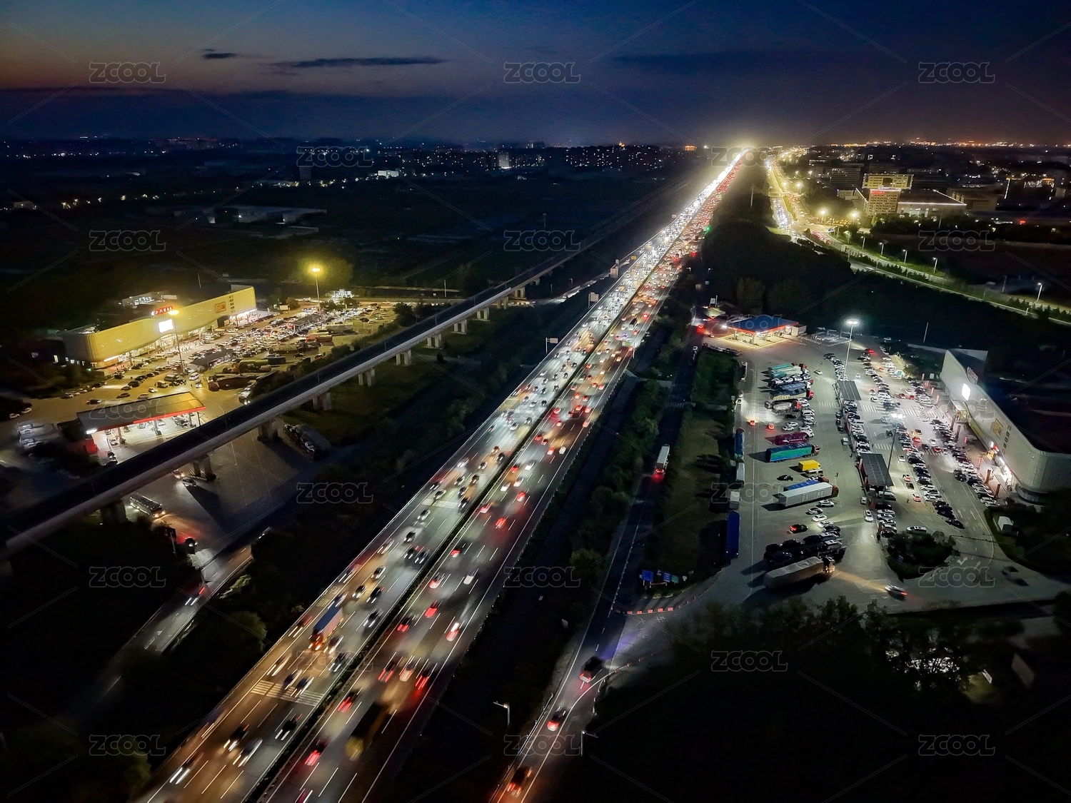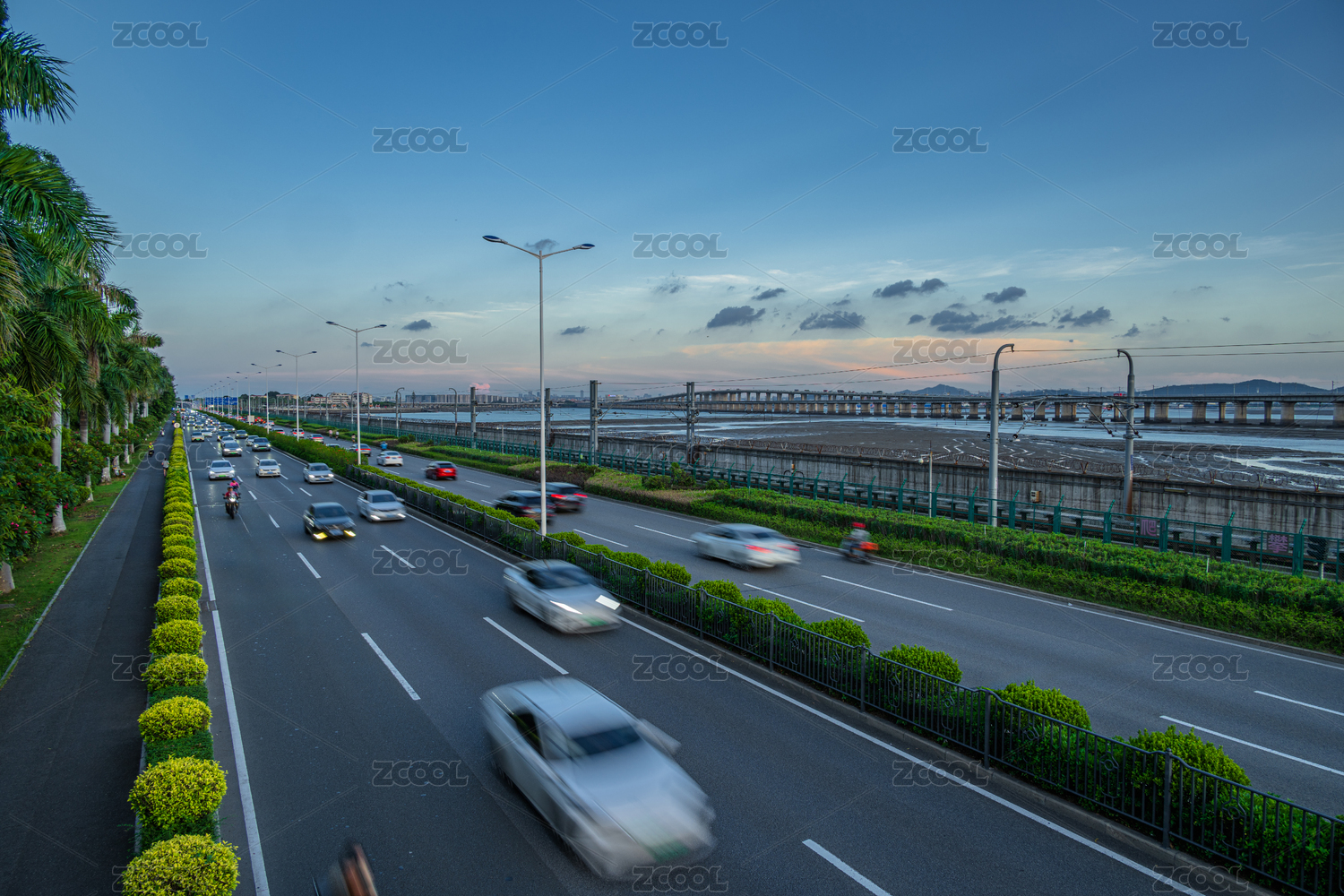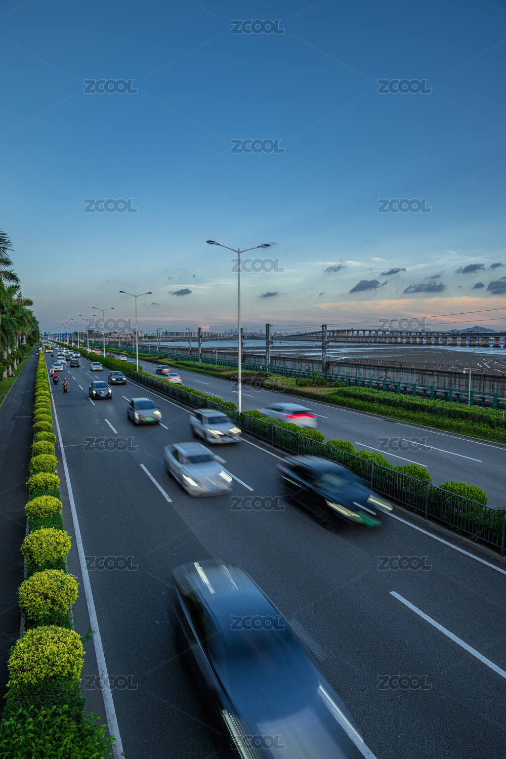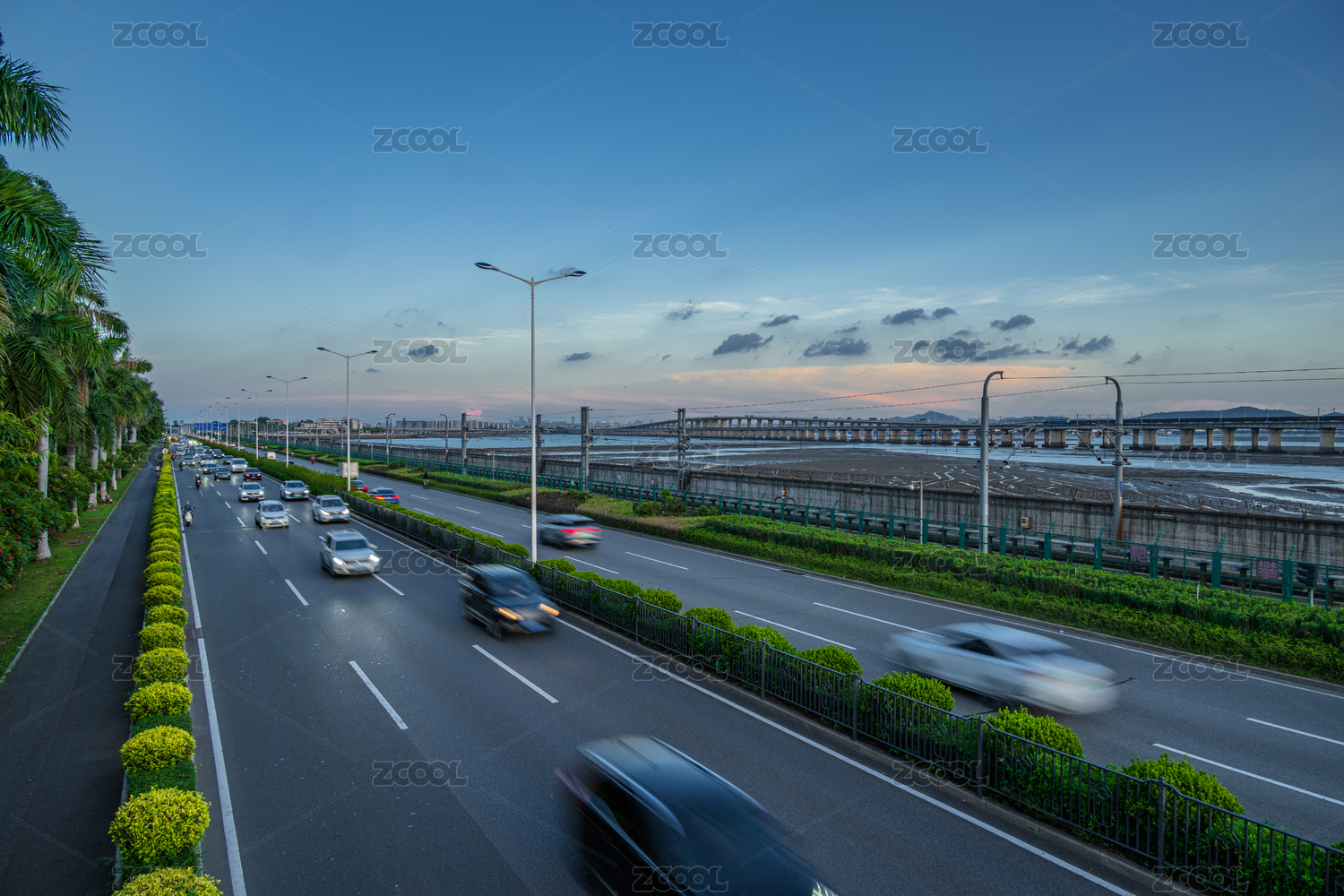 城市高速公路黃昏時(shí)分的車流景象
