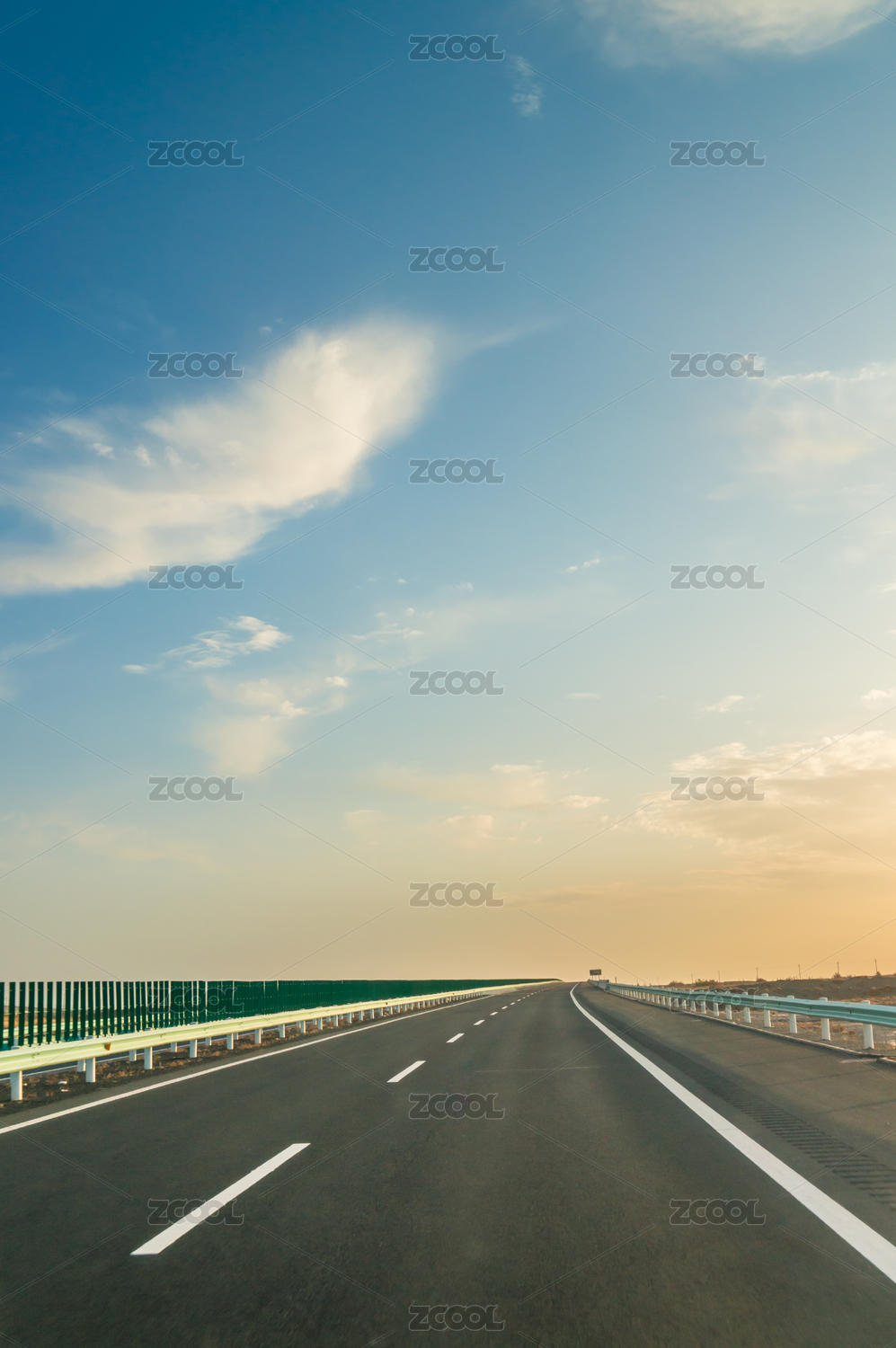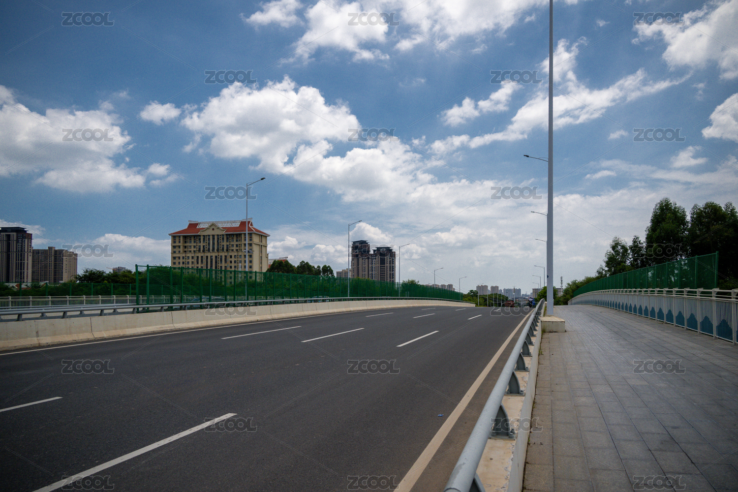 廈門城市高速公路旁的寬闊道路與藍(lán)天白云