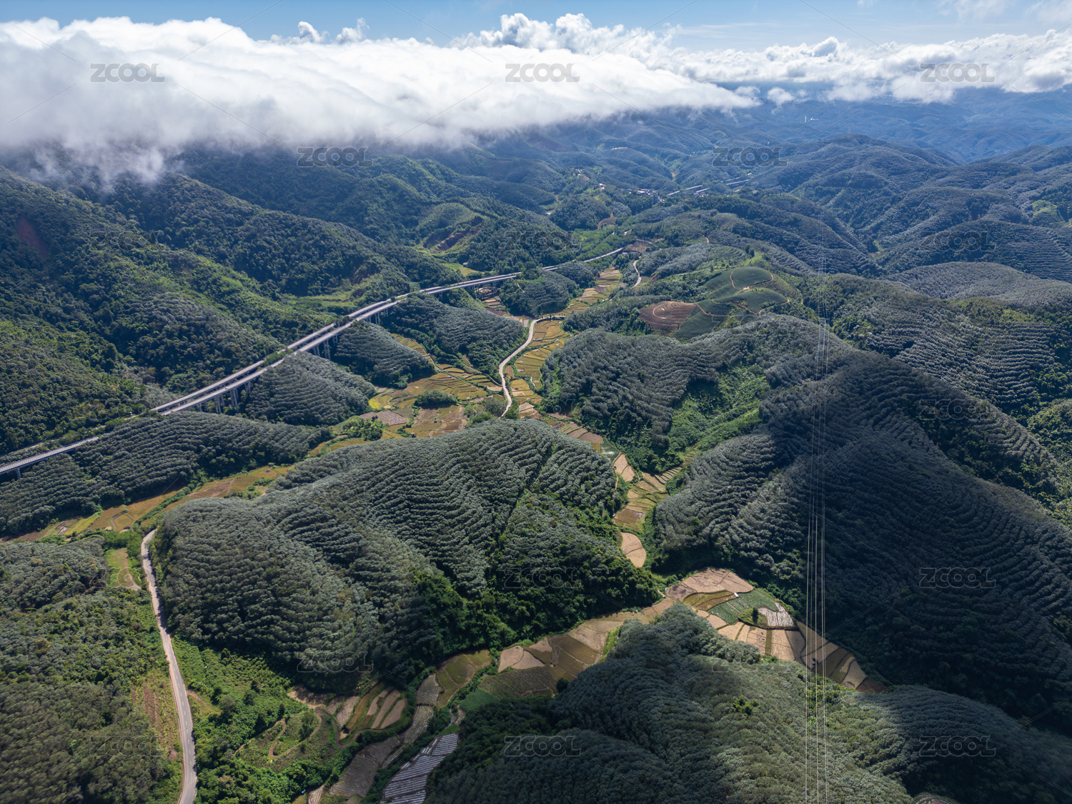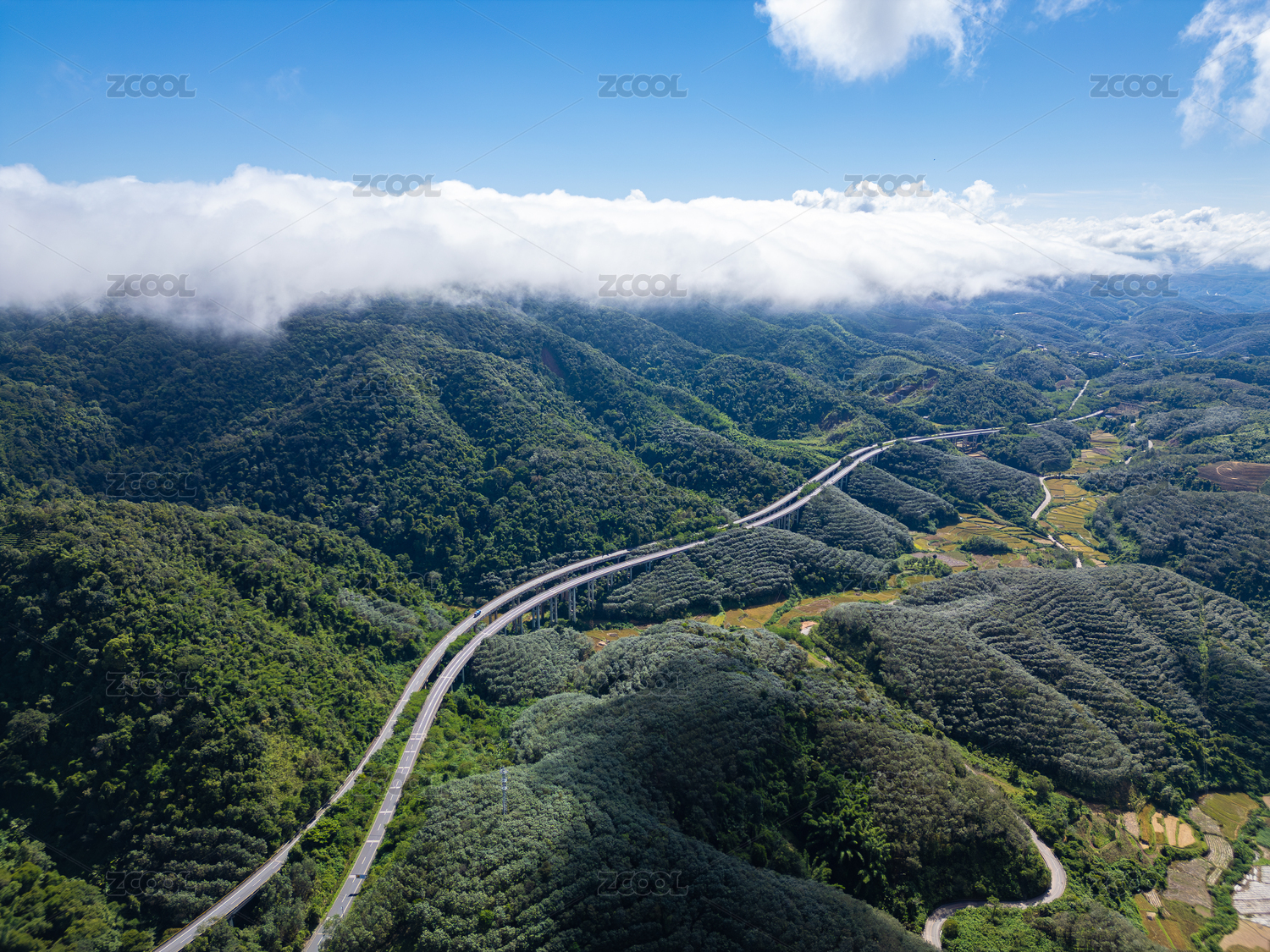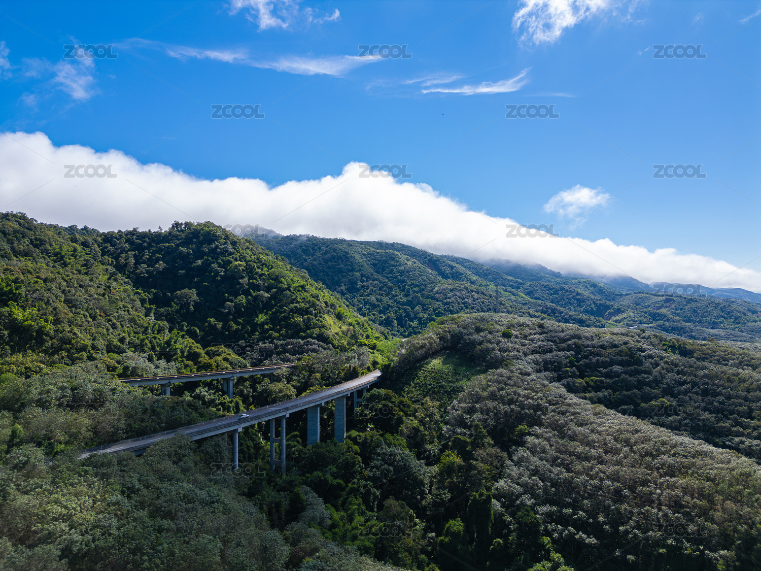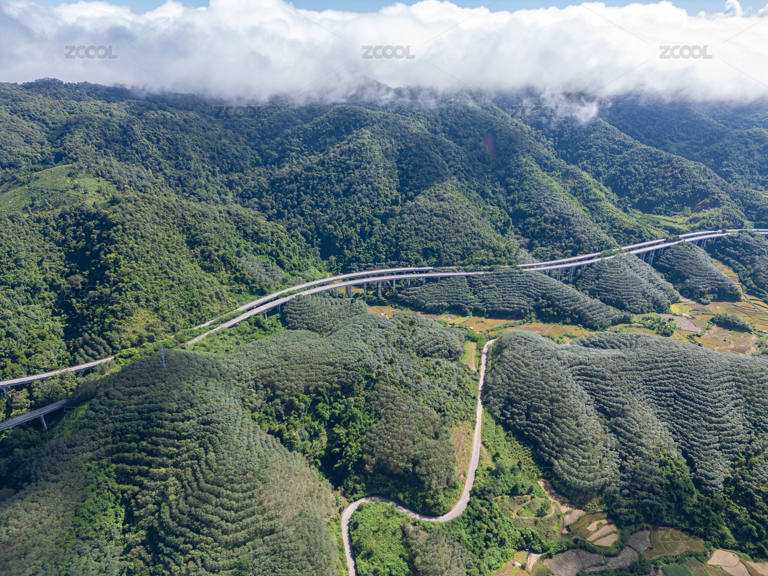 航拍云霧山林高速公路