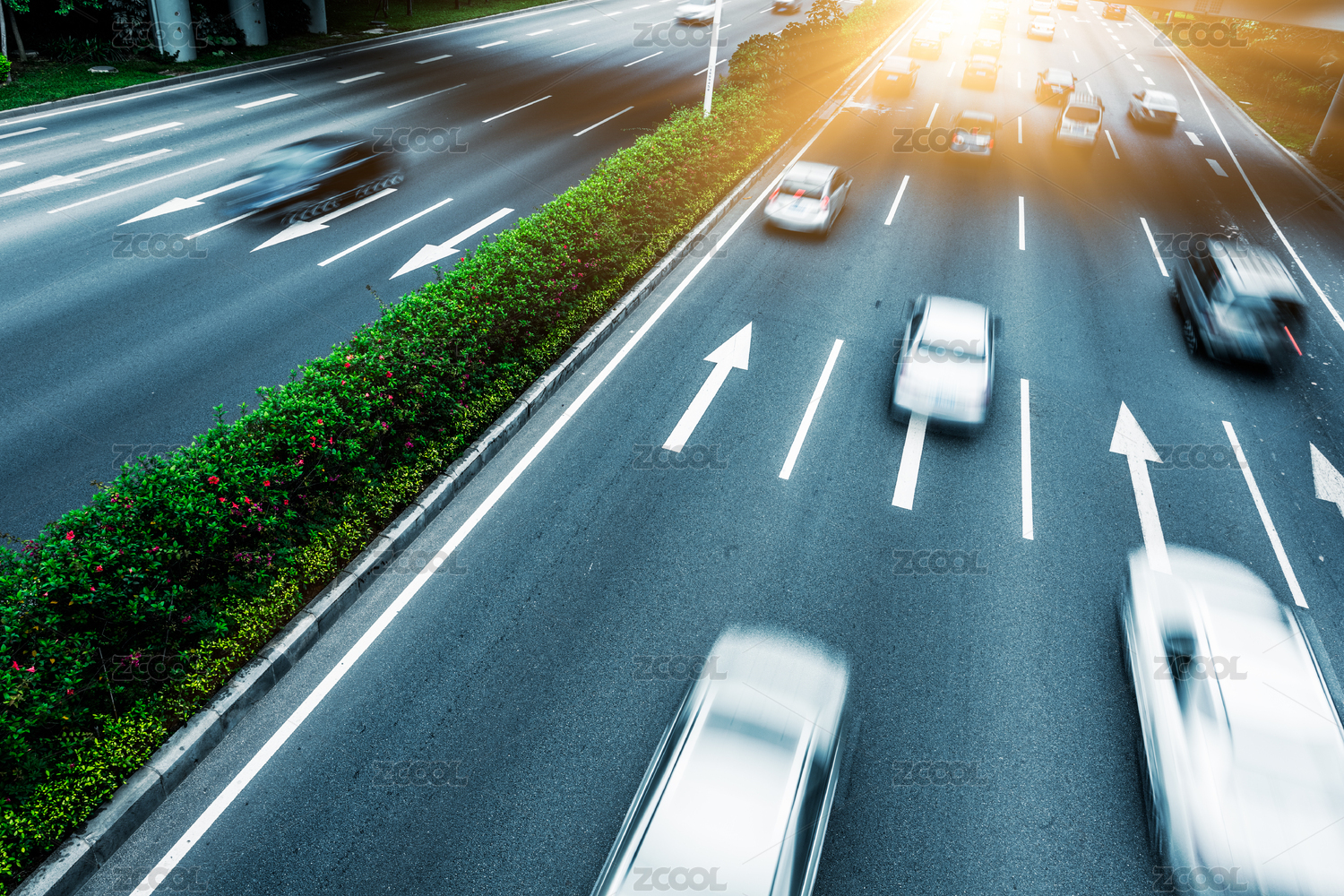 城市高速公路日落時(shí)分的繁忙景象