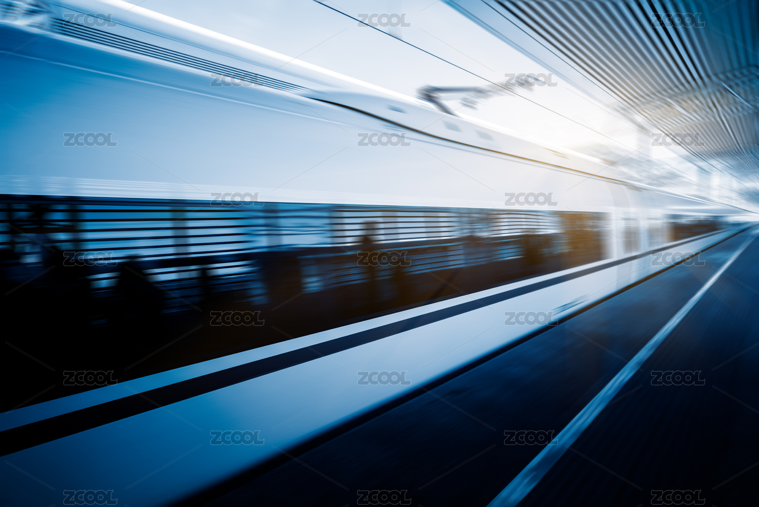 在火車站,模糊運(yùn)動(dòng),中國(guó)天津的高速列車。