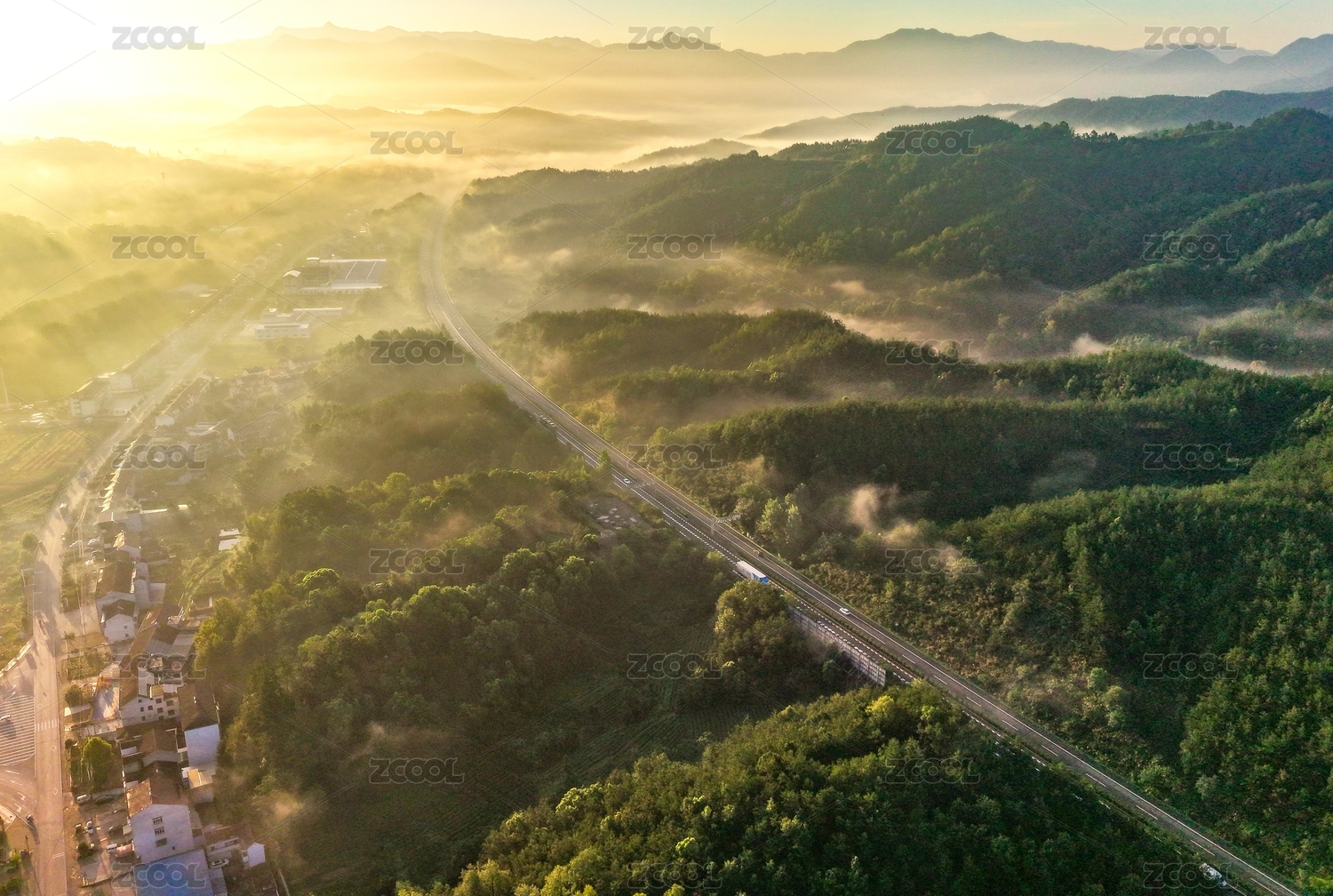 航拍滬武高速湖北英山段風(fēng)光