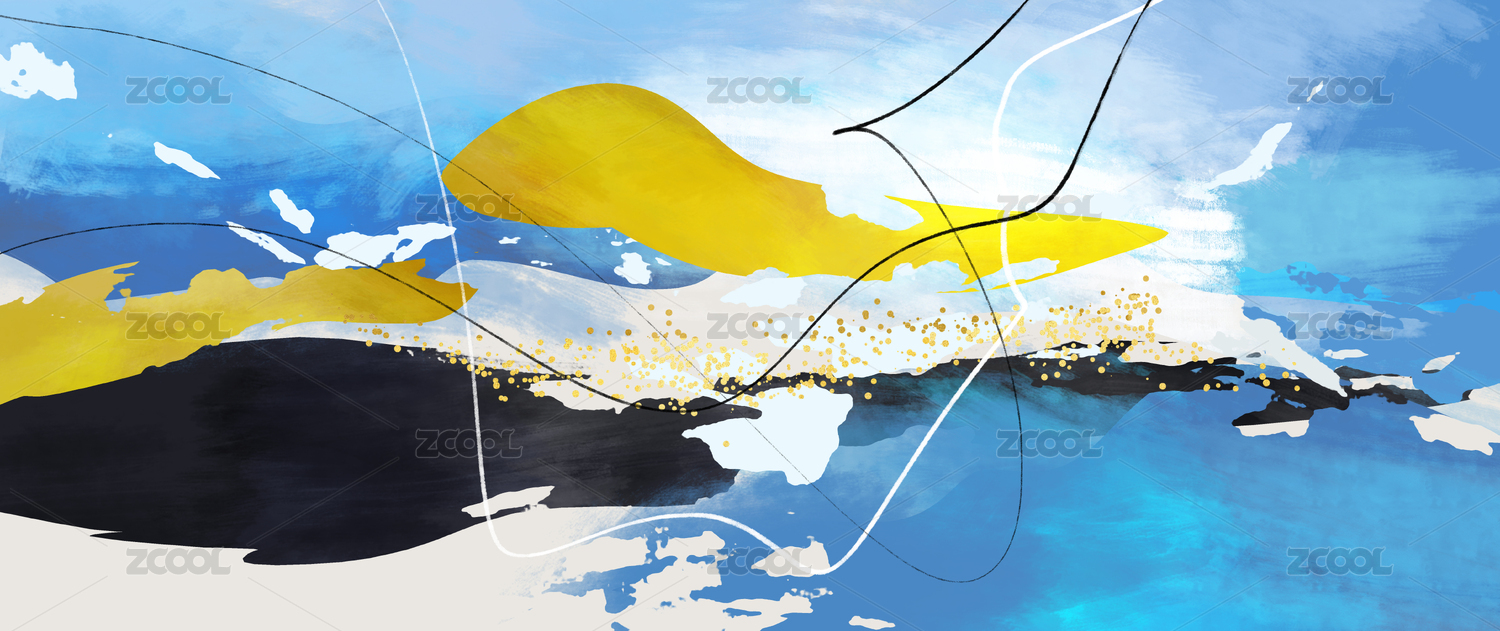 手繪金色抽象色塊筆觸寫意印象背景裝飾畫