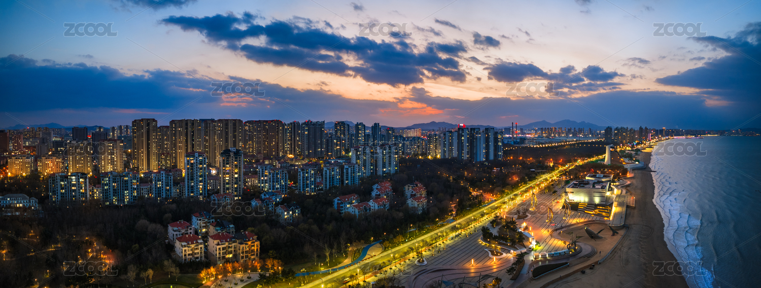 中國(guó)山東煙臺(tái)金沙灘濱海城市夜景