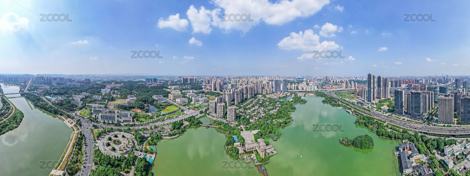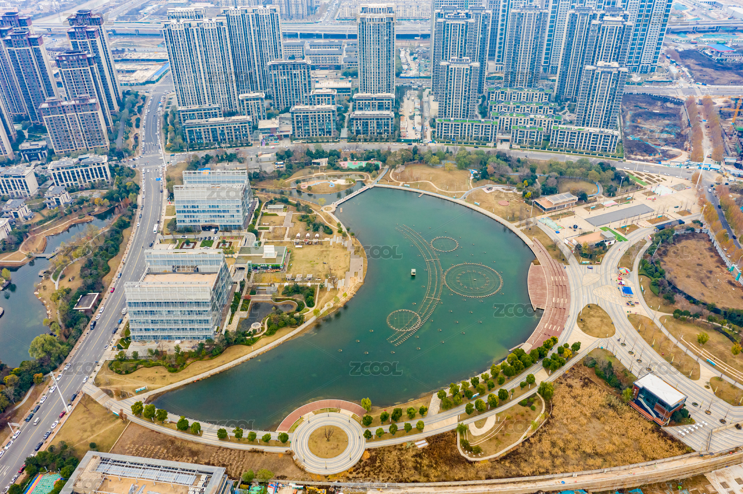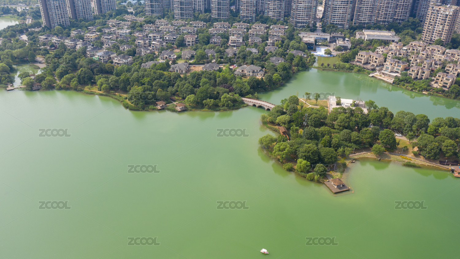航拍河南鄭州碧源月湖公園(惠濟(jì)中央公園)