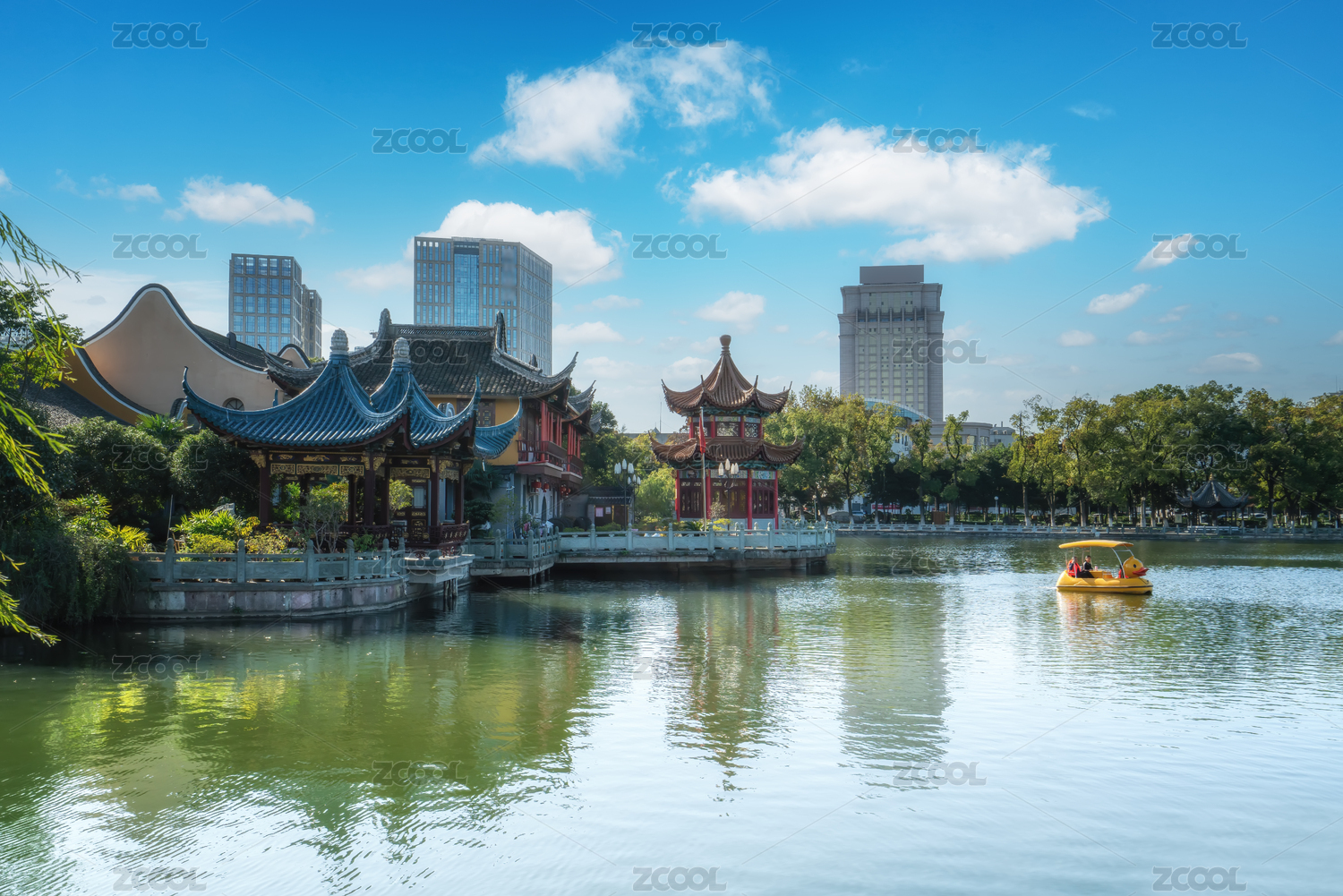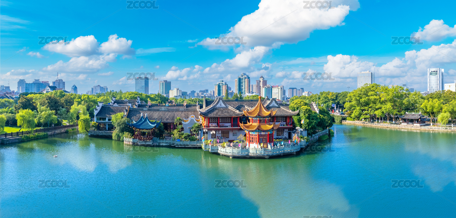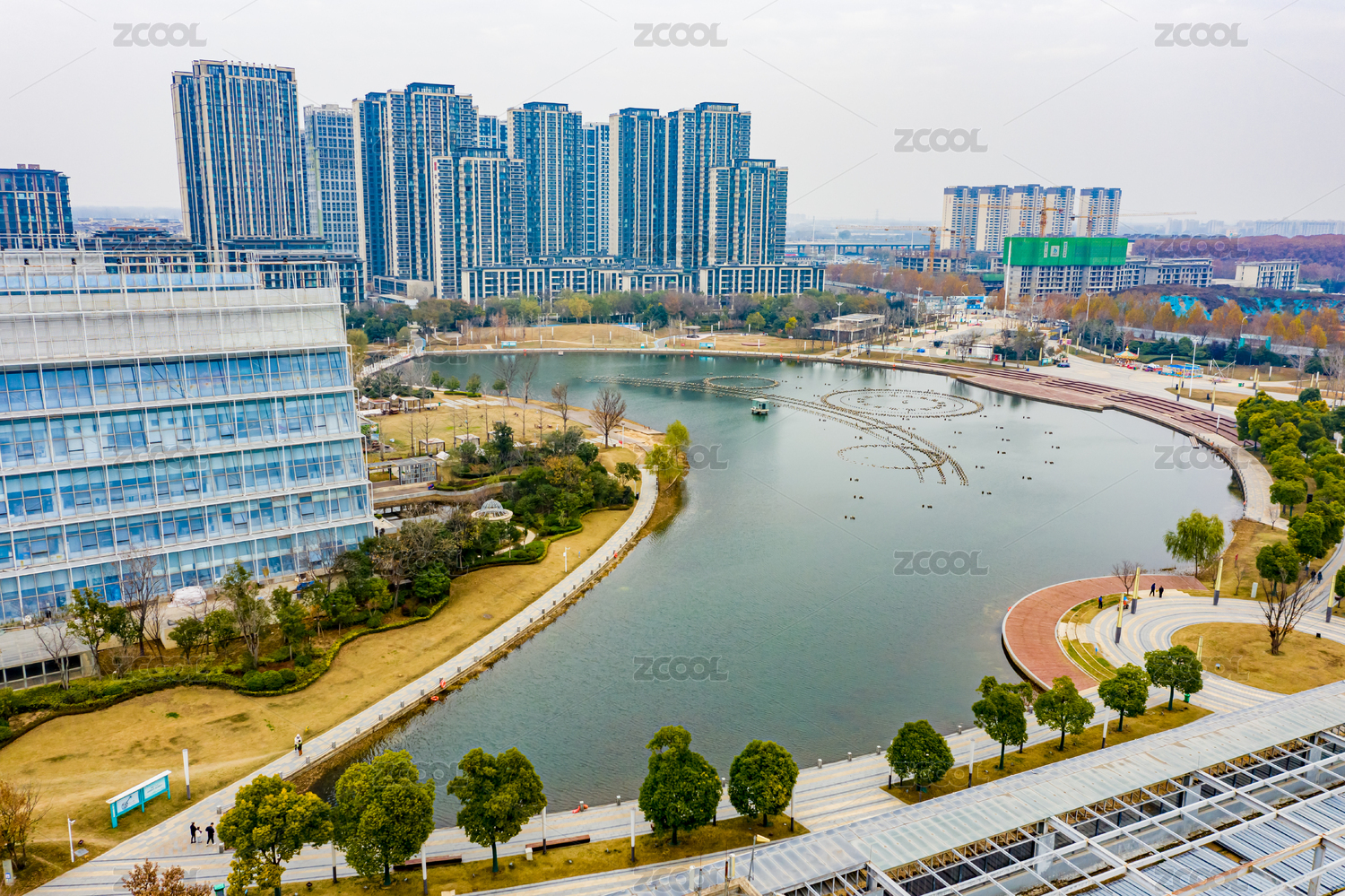 航拍河南鄭州碧源月湖公園(惠濟(jì)中央公園)