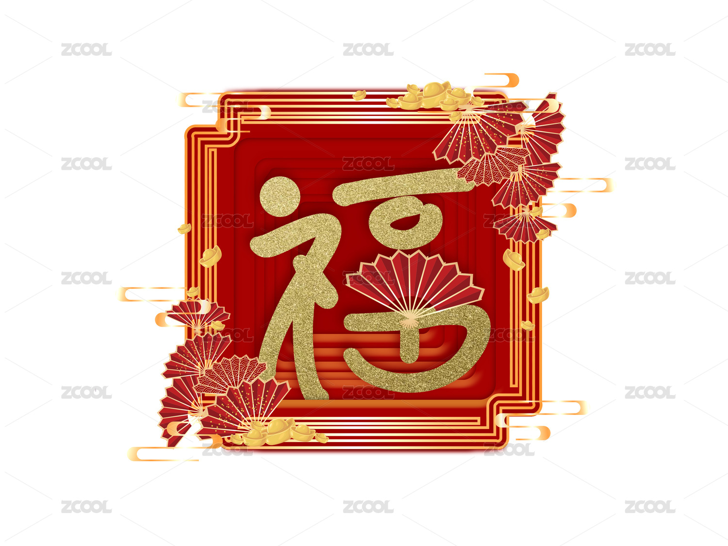 正方形金箔創(chuàng)意福字折扇