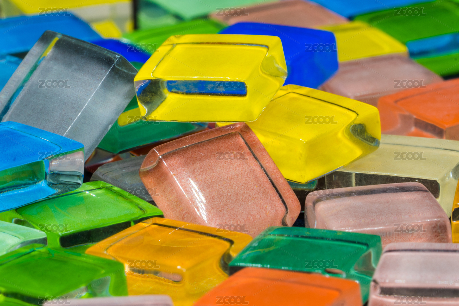 彩色正方形馬賽克玻璃塊堆放