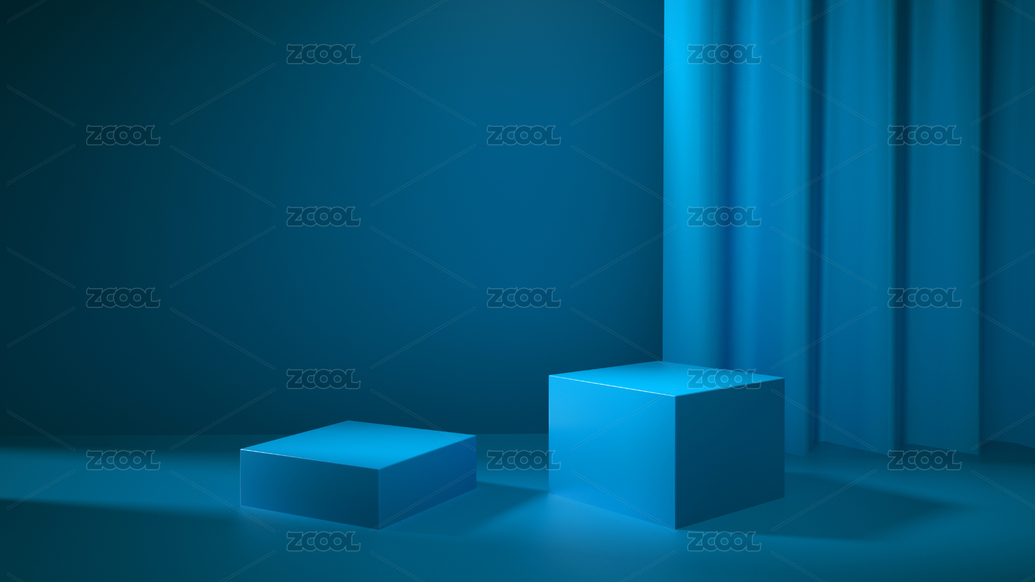 三維渲染的藍(lán)色正方形窗簾背景