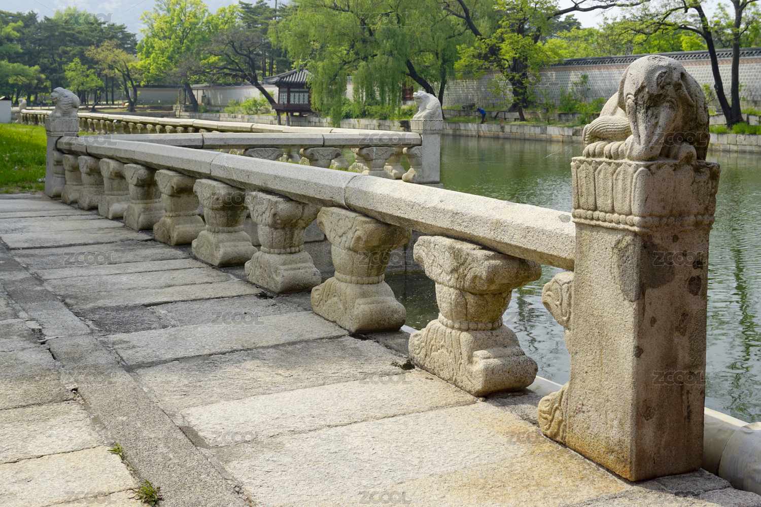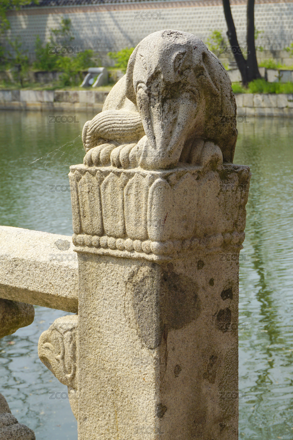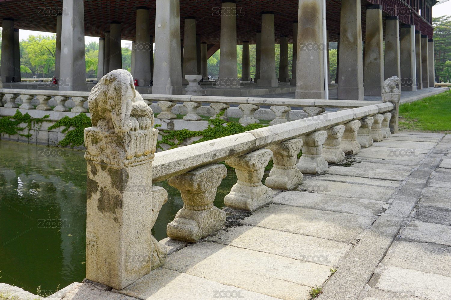 韓國景福宮慶會樓欄桿石柱大象雕塑