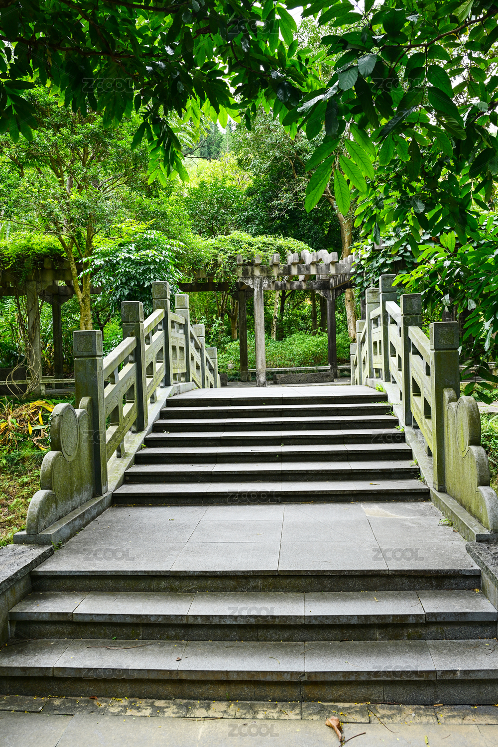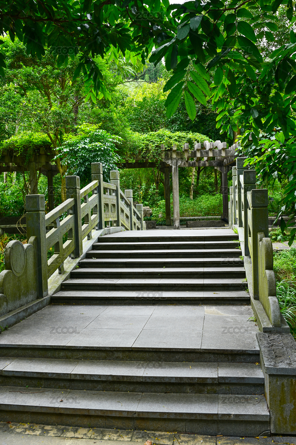 深圳仙湖植物園園林古橋石階與綠植景觀