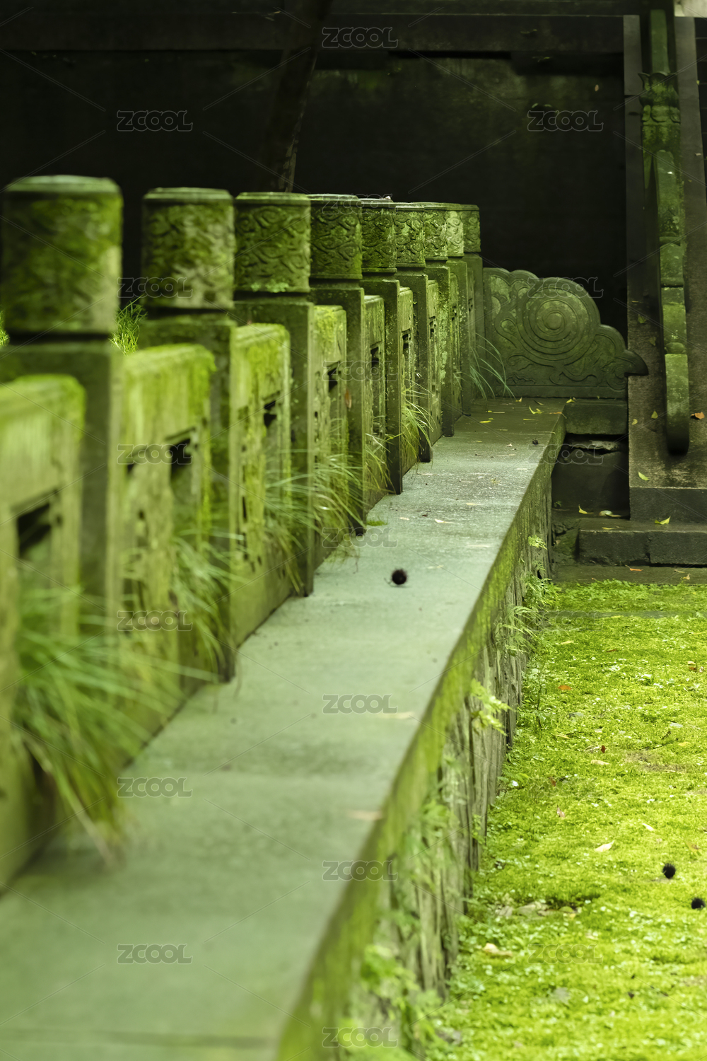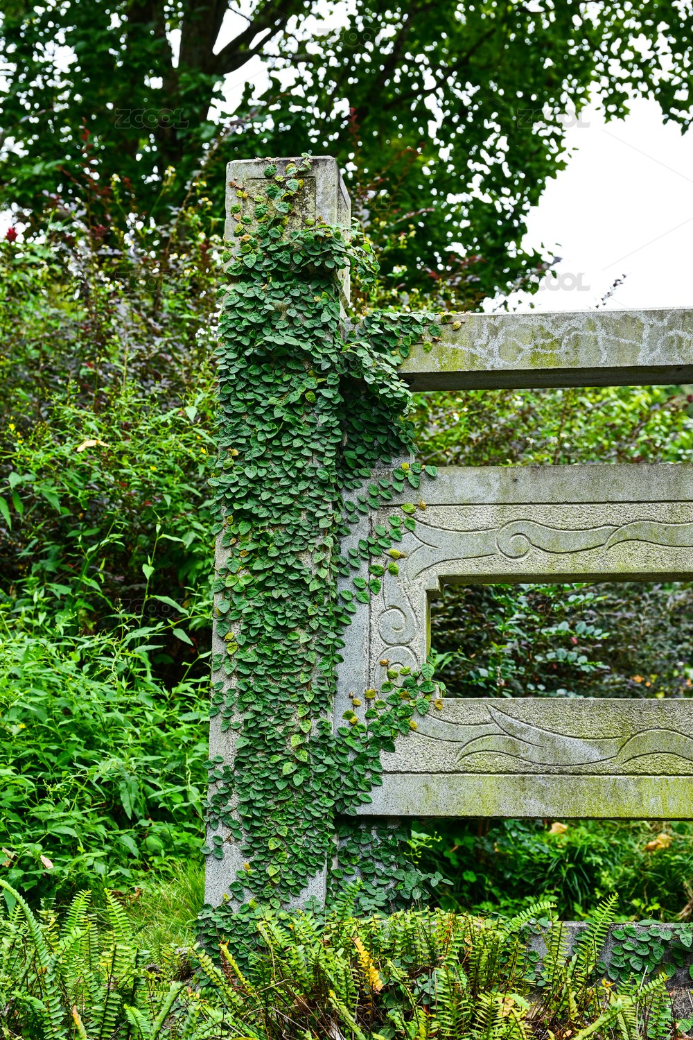 深圳仙湖植物園藤蔓纏繞的石欄桿景觀
