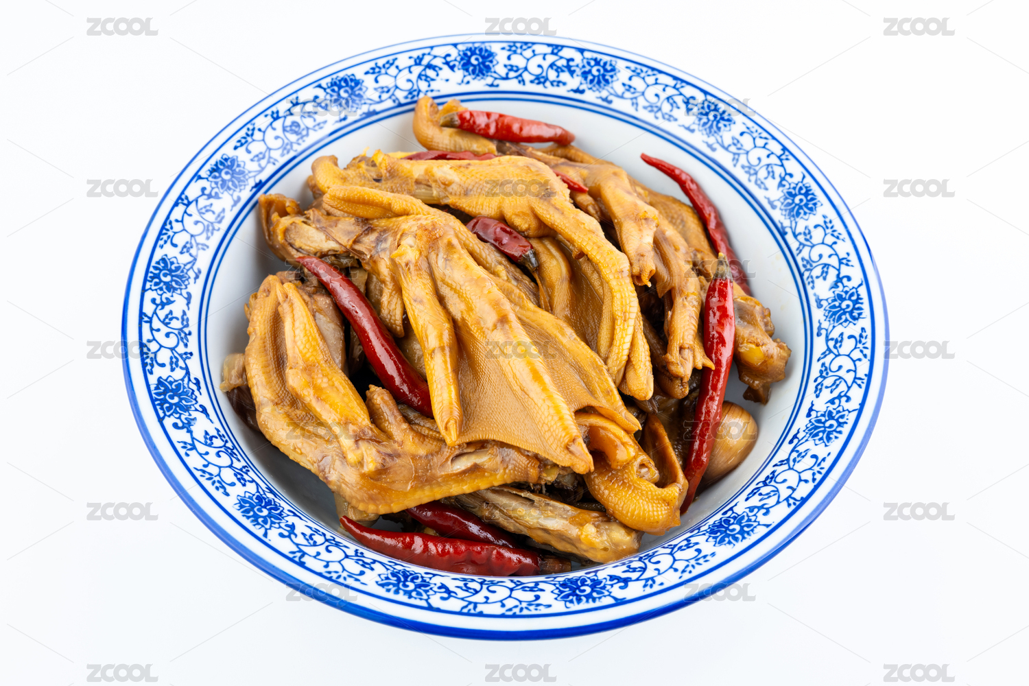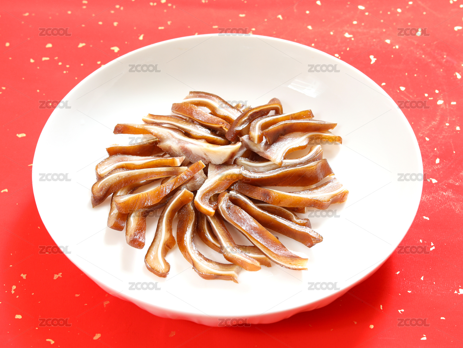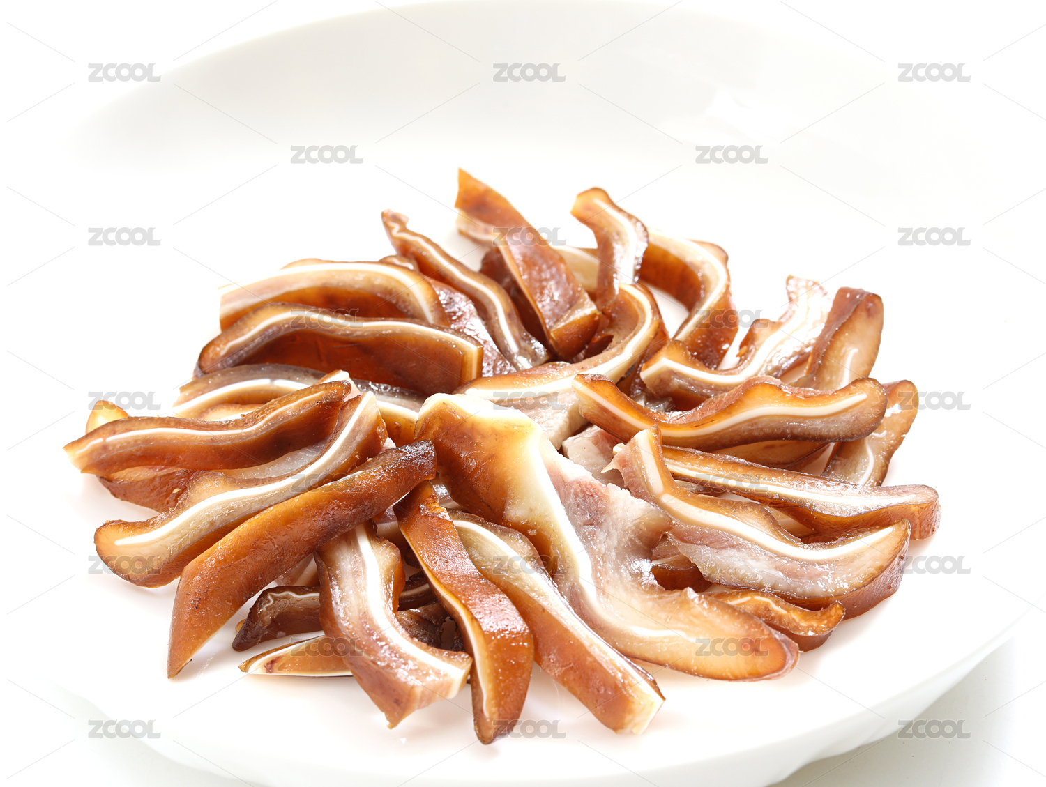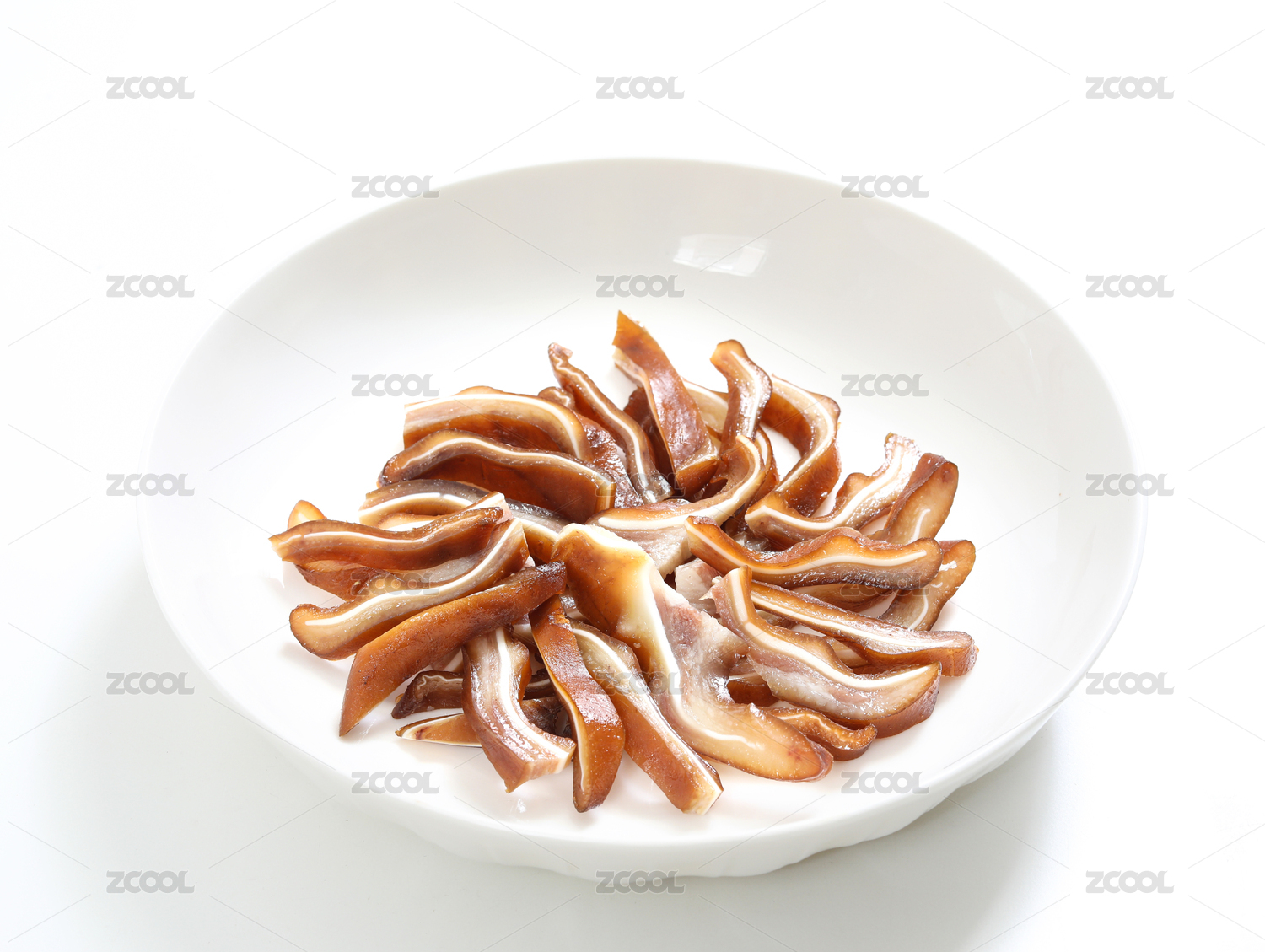 白色背景上的一道中餐涼菜鹵菜豬耳朵