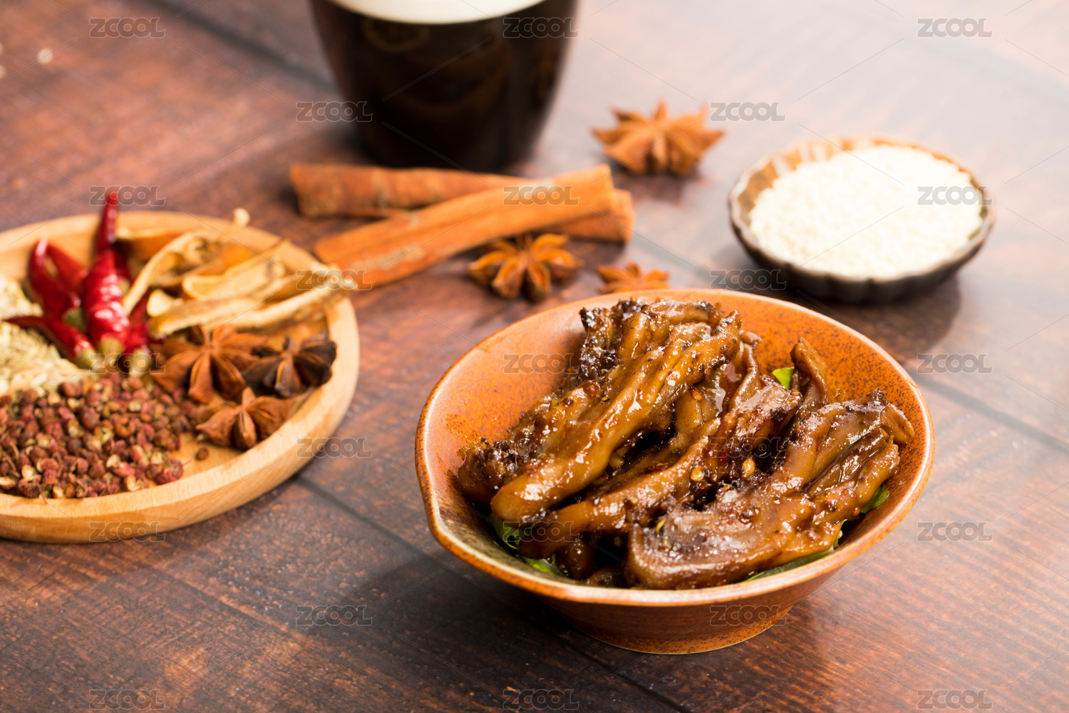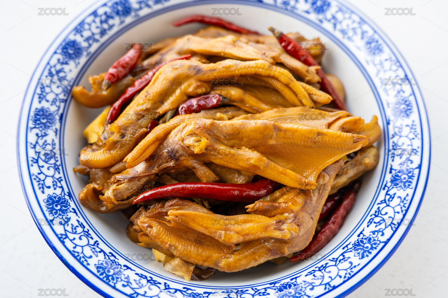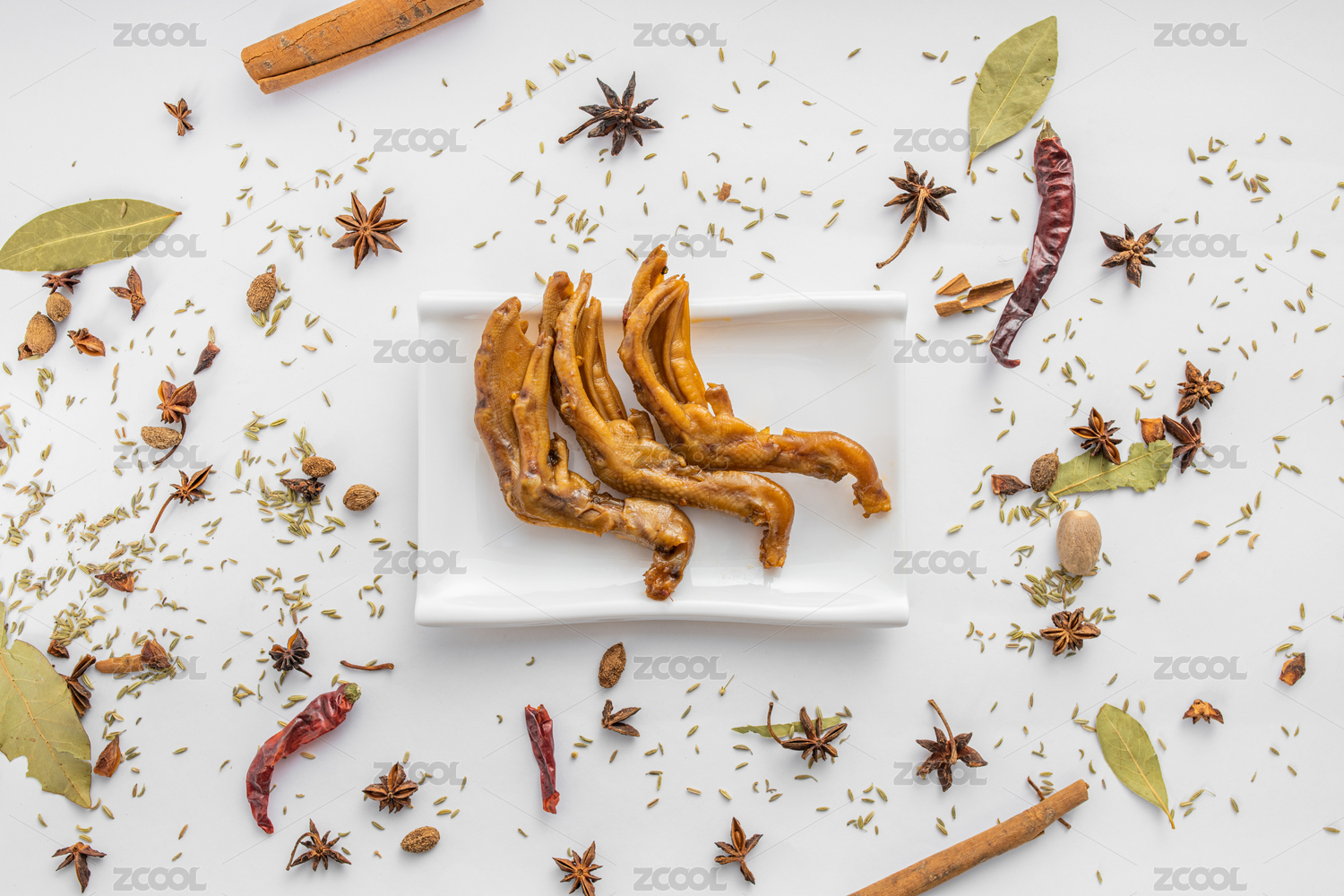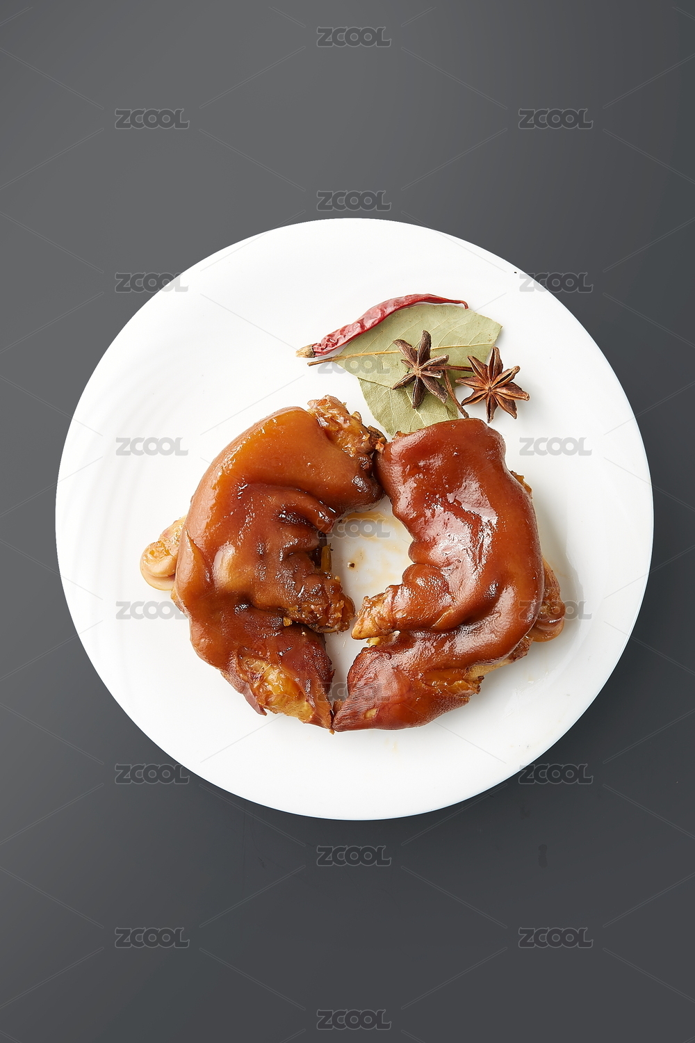 白色背景上的一道中餐涼菜鹵菜豬耳朵