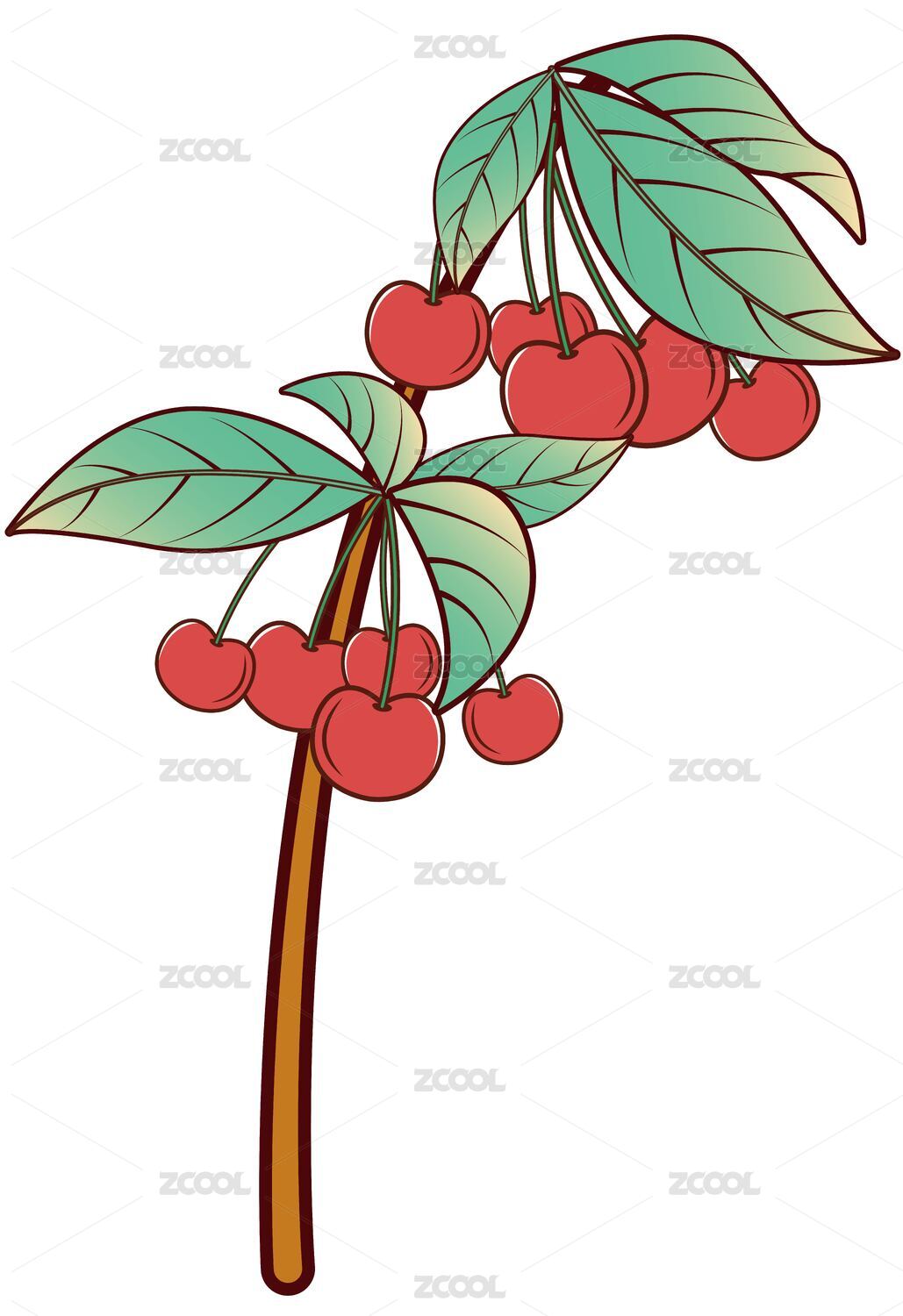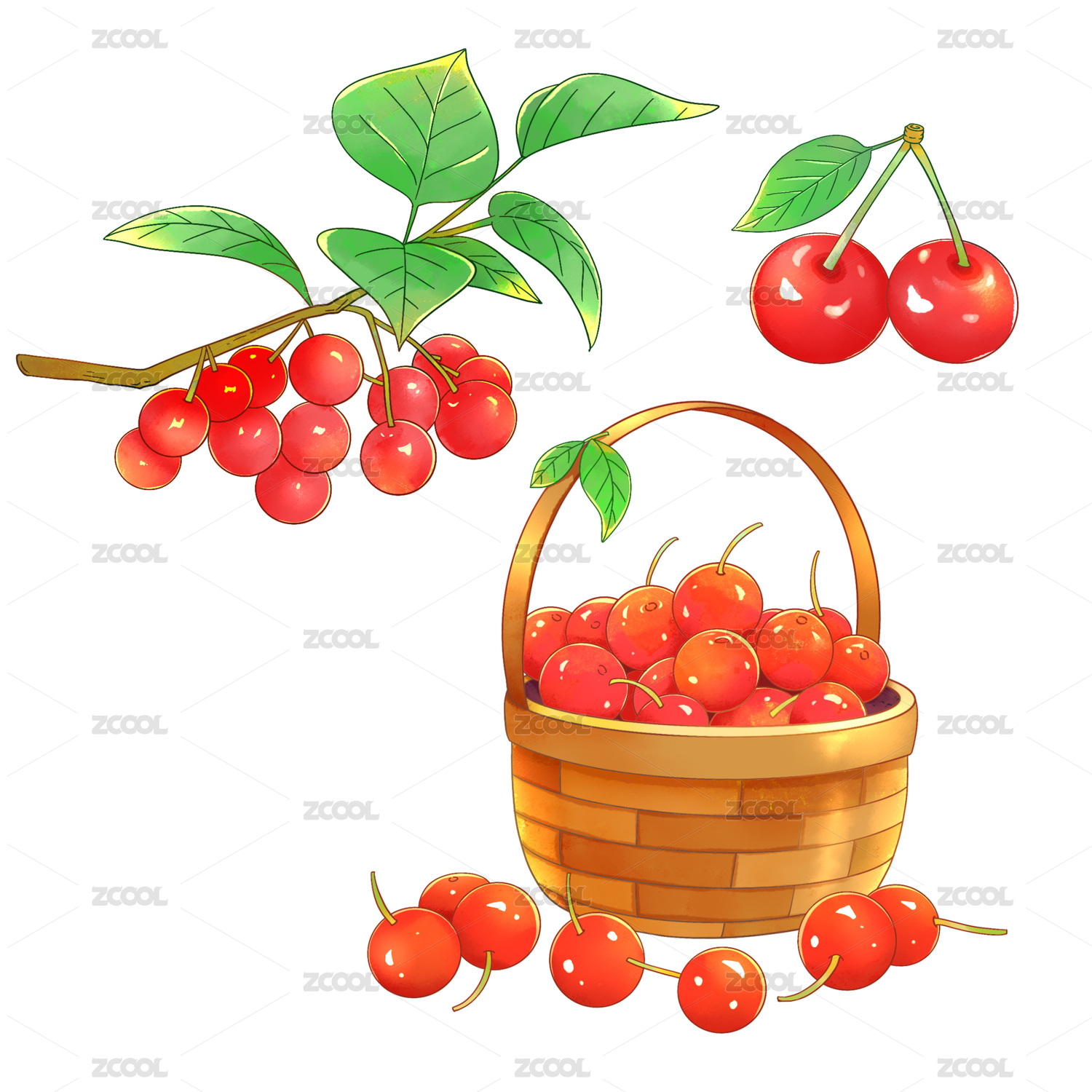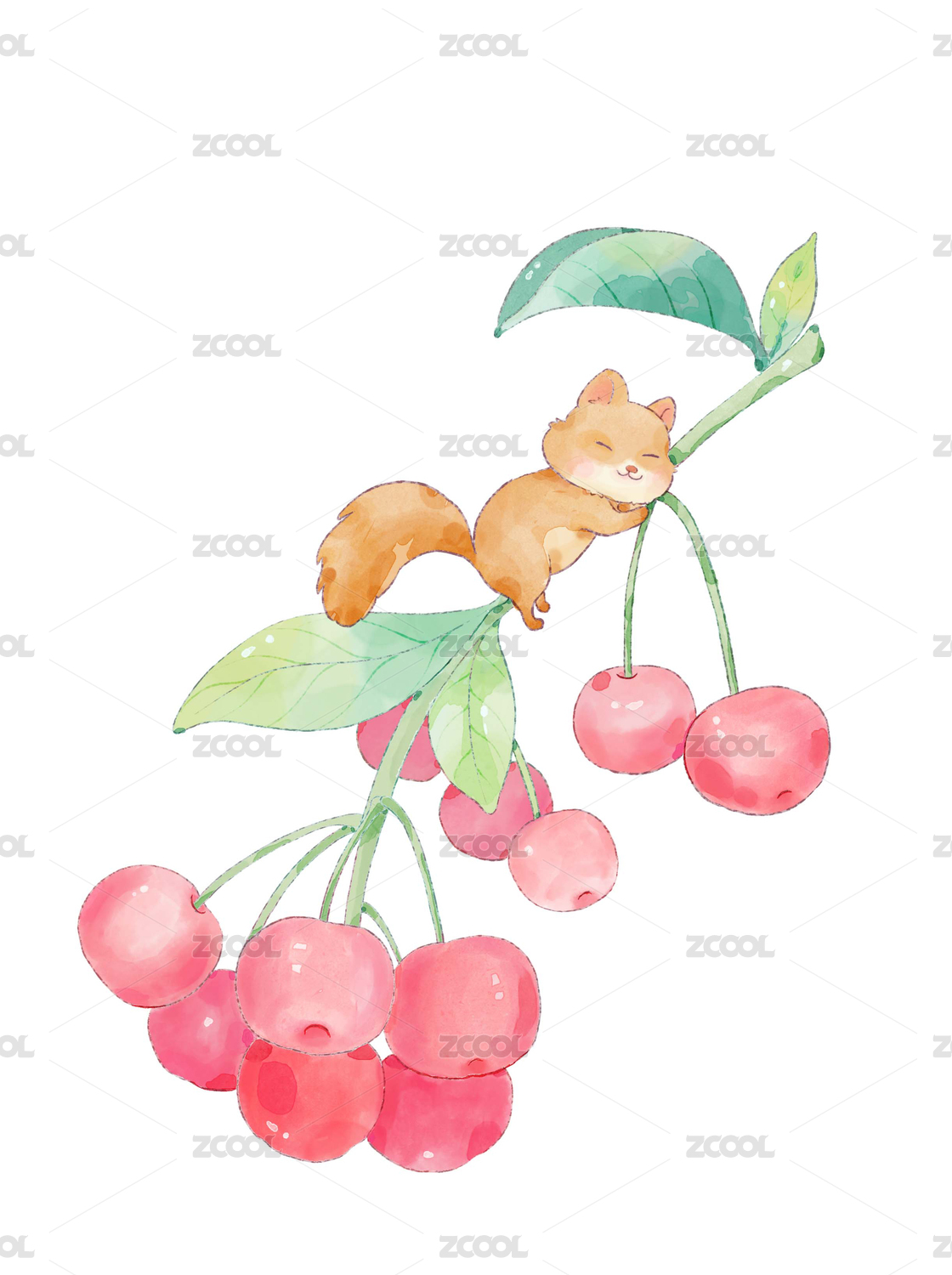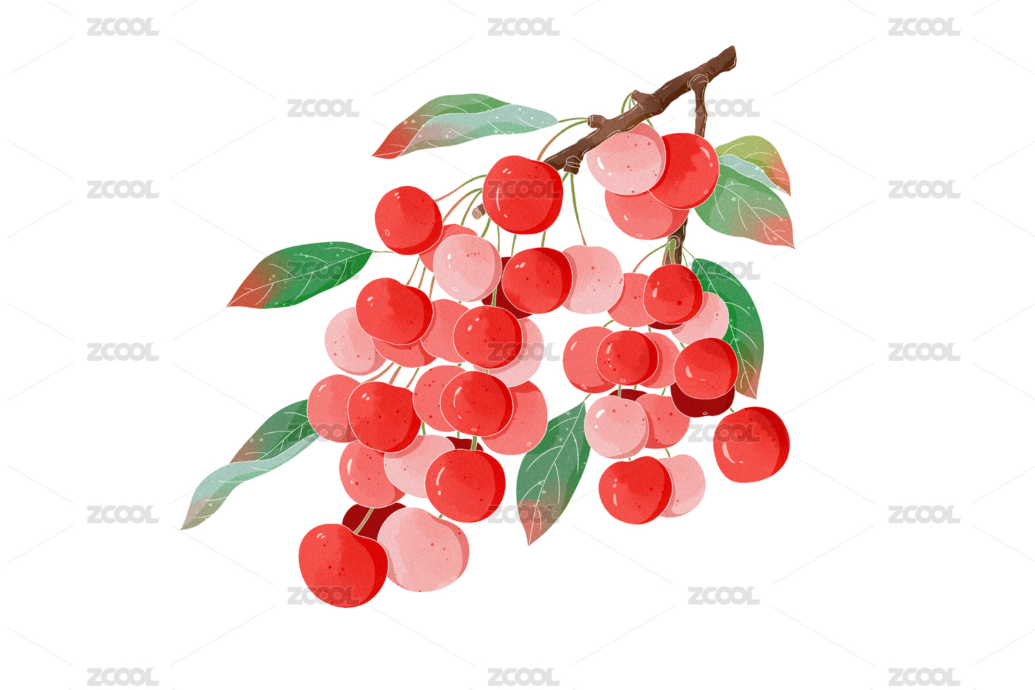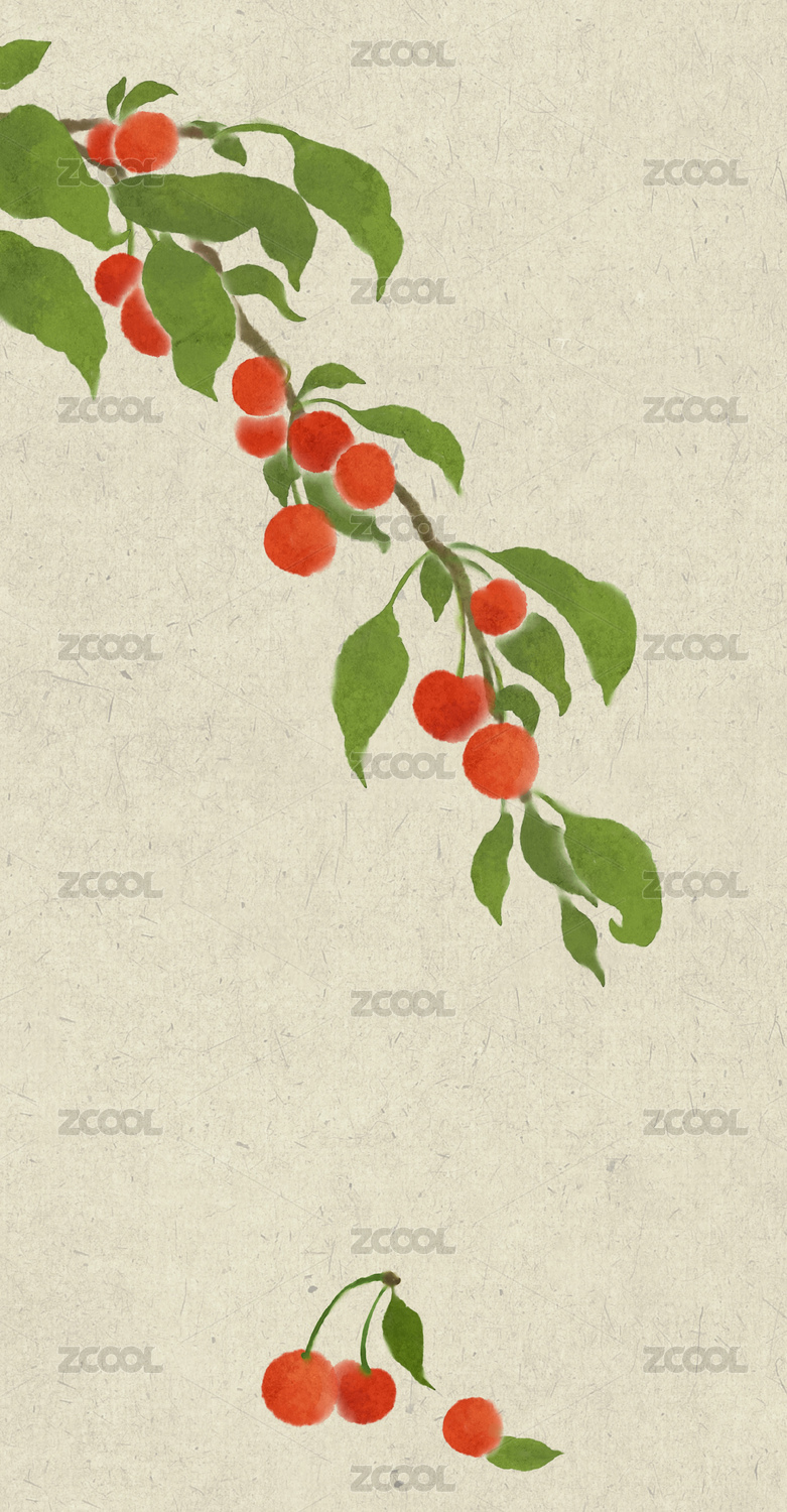 中國(guó)風(fēng)手繪水果櫻桃插畫