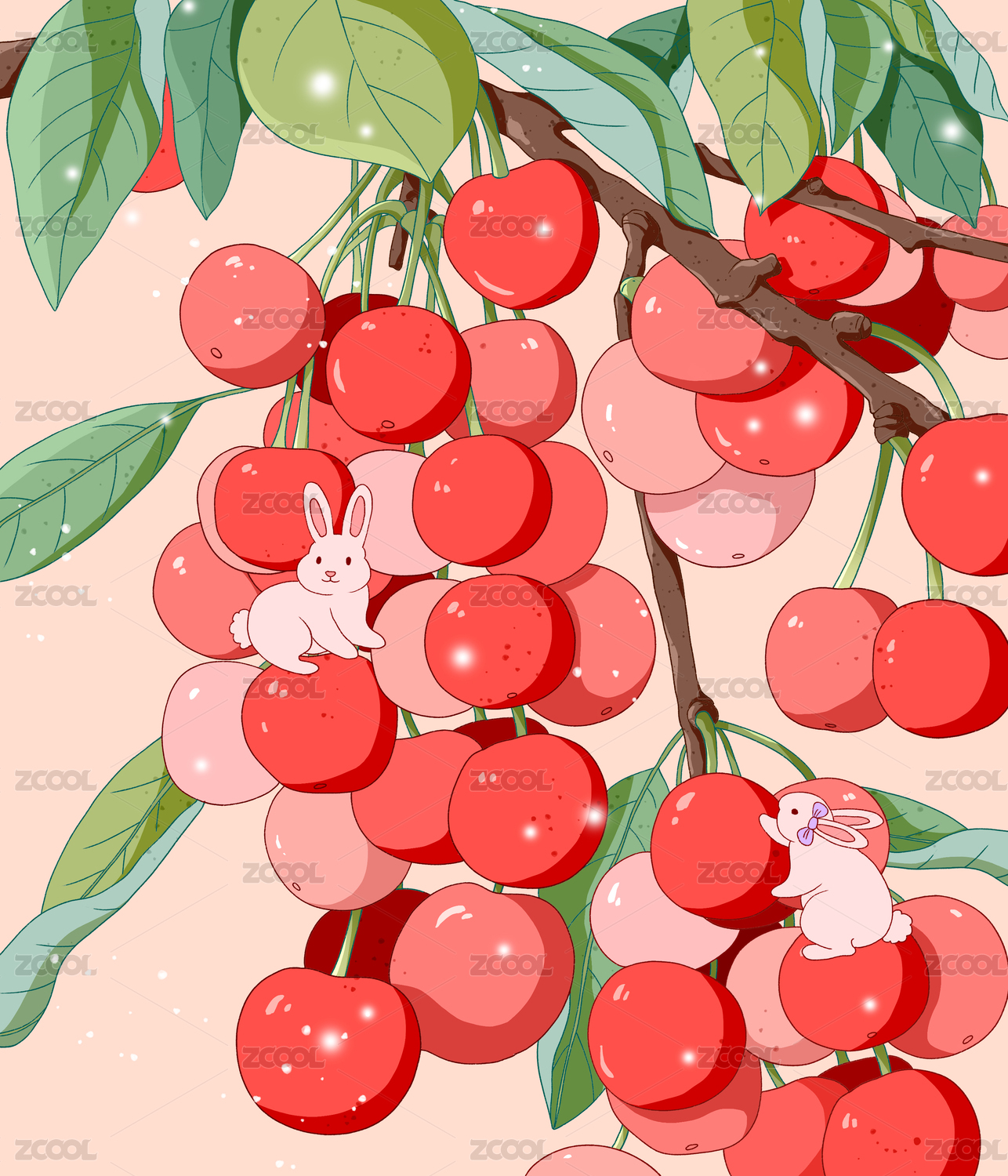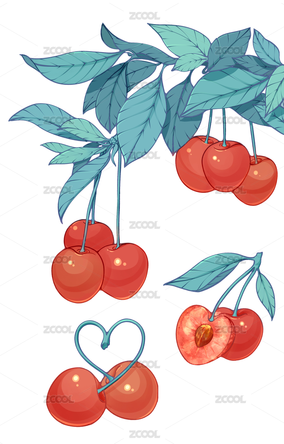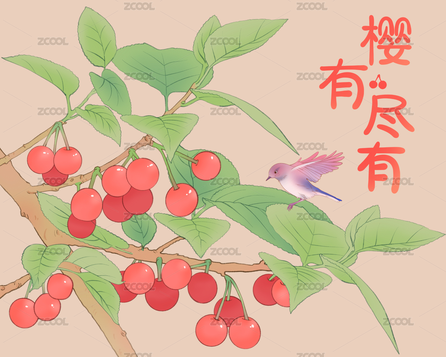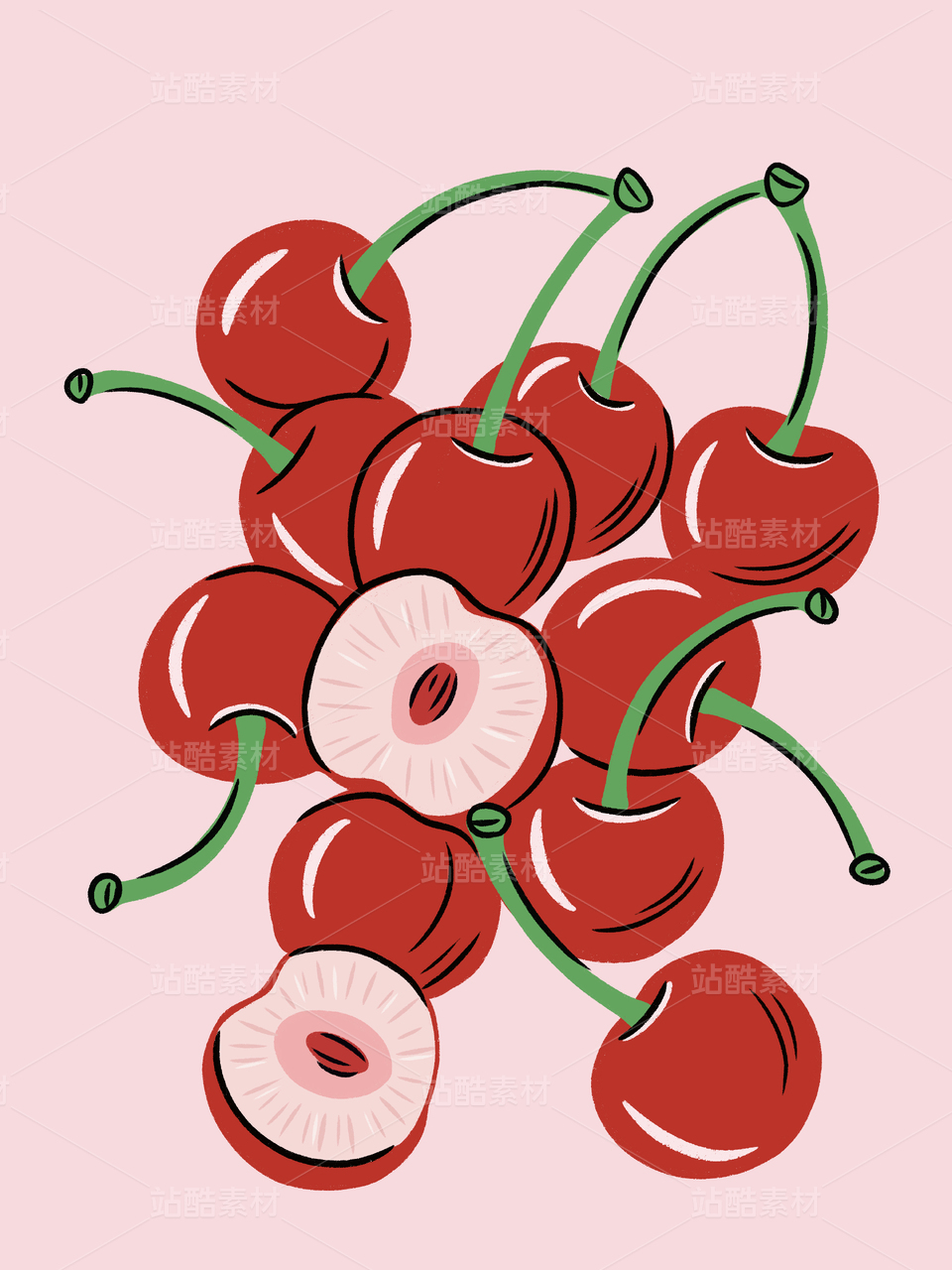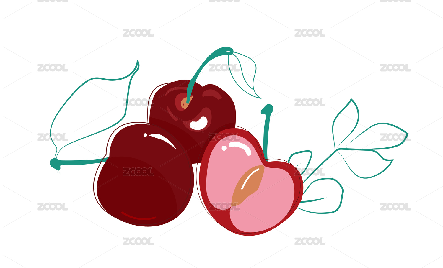 中國(guó)風(fēng)手繪水果櫻桃插畫