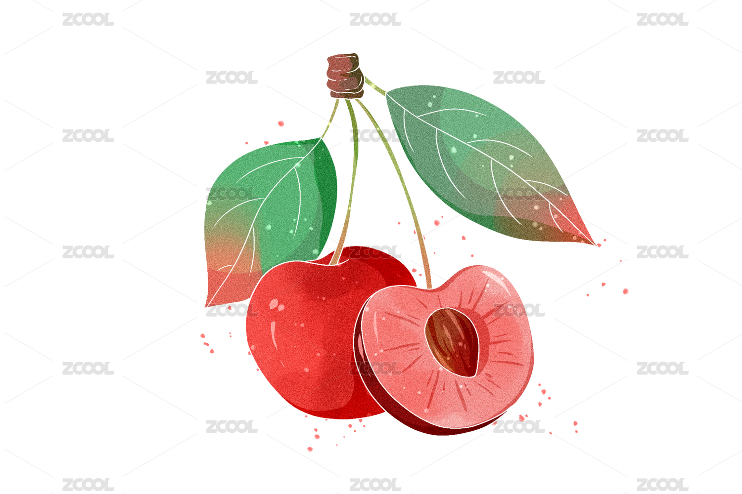 手繪扁平風(fēng)肌理風(fēng)格紅色櫻桃插畫